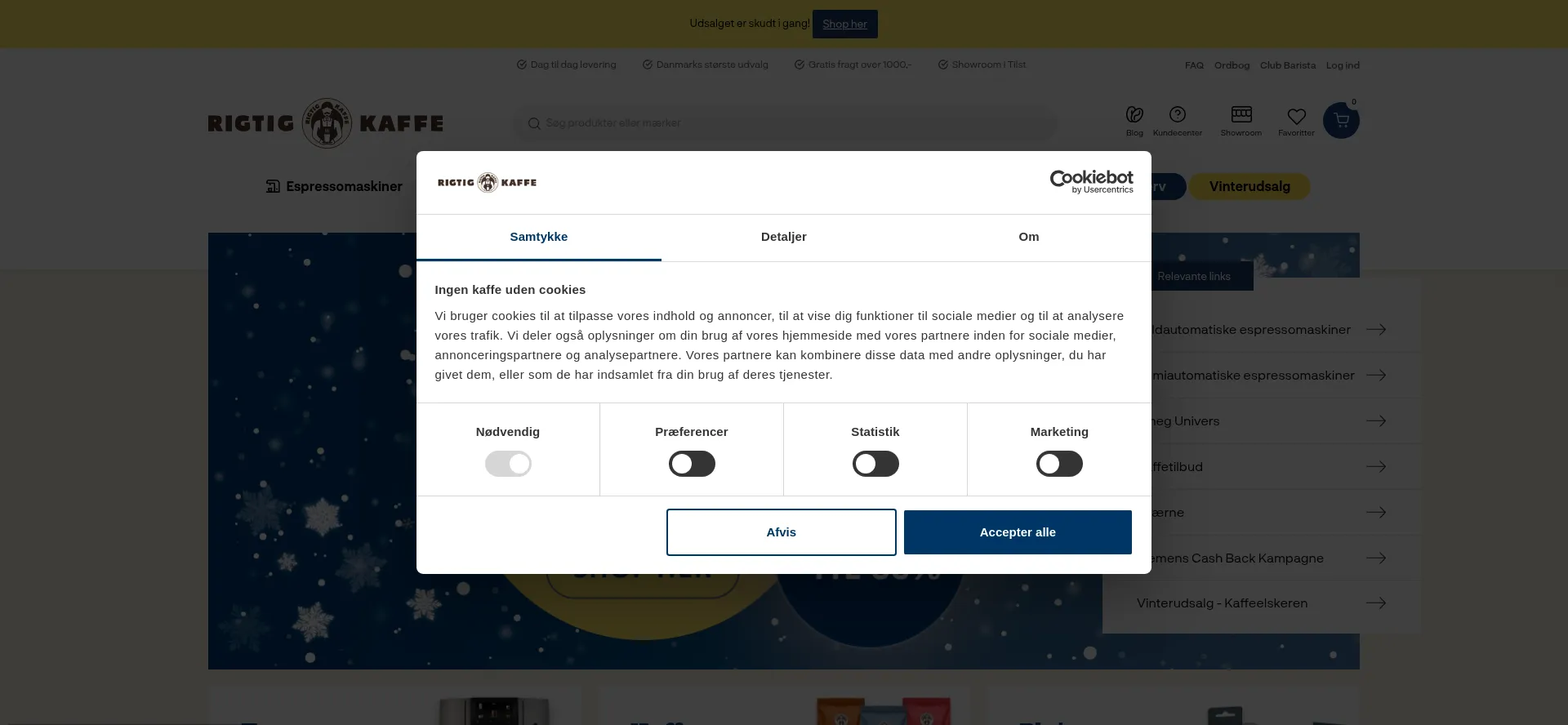 该网站实现符合GDPR或CCPA等隐私法规的cookie同意机制。这表明 rigtigkaffe.dk 遵守数据保护标准并为用户提供对个人数据收集实践的控制。