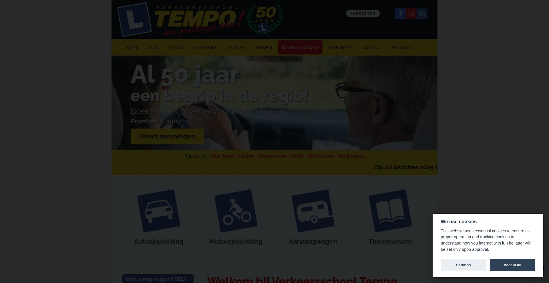 Verkeersschool Tempo is al 50 jaar actief in het geven van rijlessen. Naast autorijlessen geven wij ook rijlessen voor motor en aanhanger.
