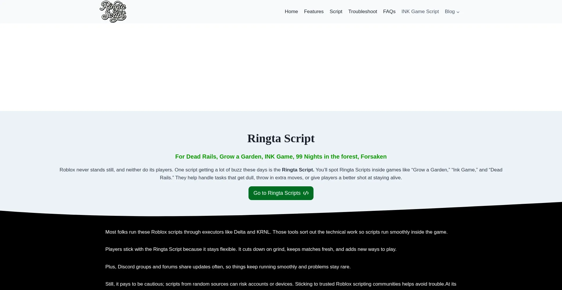 Get Ringta Script to Auto Win All Roblox Games like Grow a Garden, 99 Nights in the Forest, INK Game, Dead Rails, and Forsaken without KEY. Now Automate Game!!