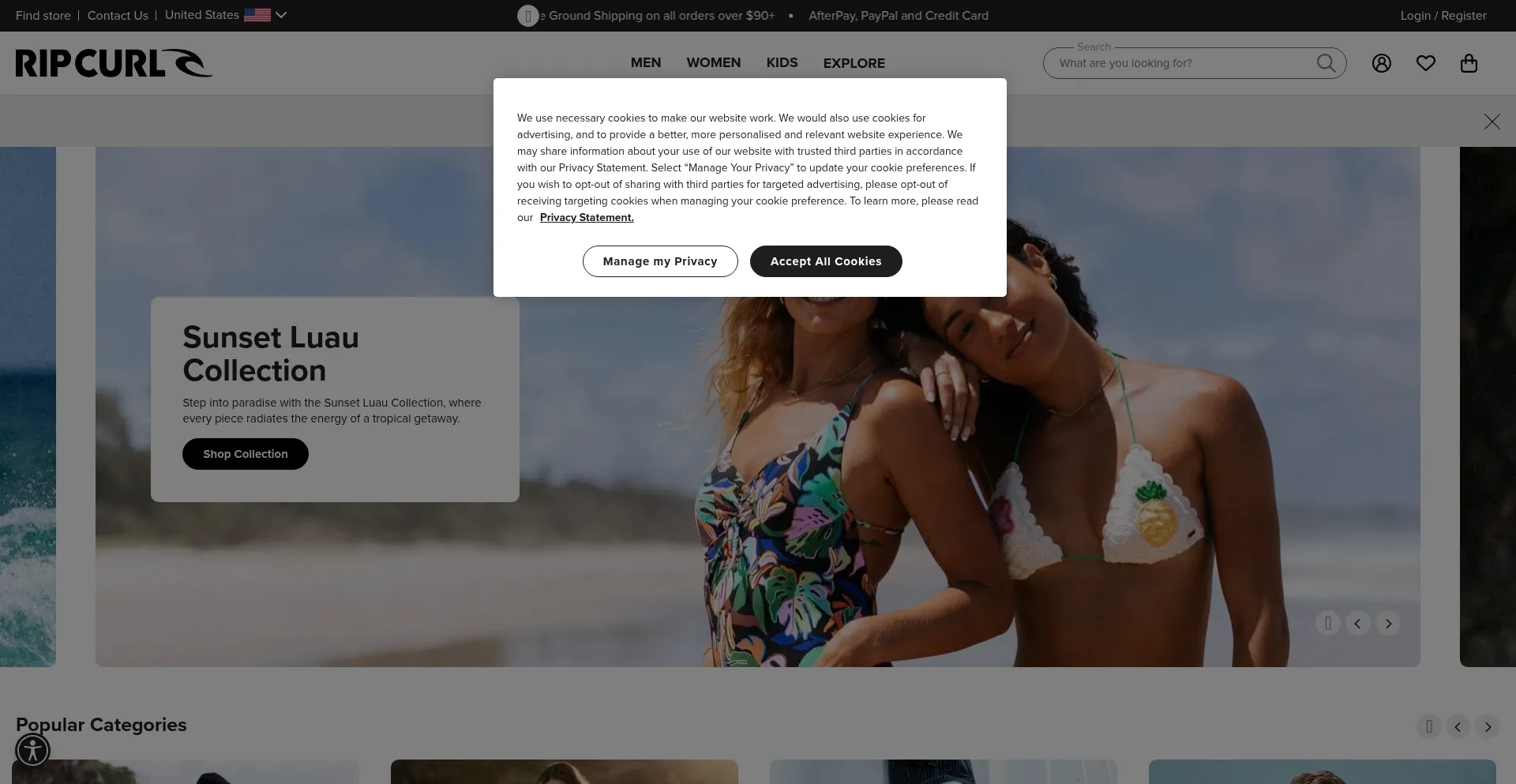 该网站实现符合GDPR或CCPA等隐私法规的cookie同意机制。这表明 ripcurl.eu 遵守数据保护标准并为用户提供对个人数据收集实践的控制。