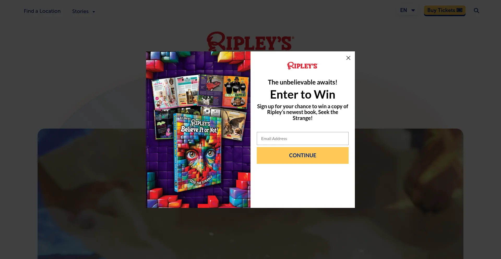 该网站实现数据收集表单,请求个人信息,包括姓名、电子邮件地址、电话号码或其他敏感详细信息。用户应验证 ripleys.com 的合法性并在提交个人数据前查看隐私政策。
