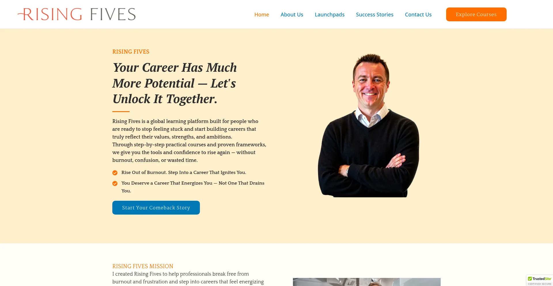 “Transform your career with Rising Fives. Dallas Mullaney offers coaching, mindset tools & tactical strategies to reignite your purpose, build confidence, and thrive.”