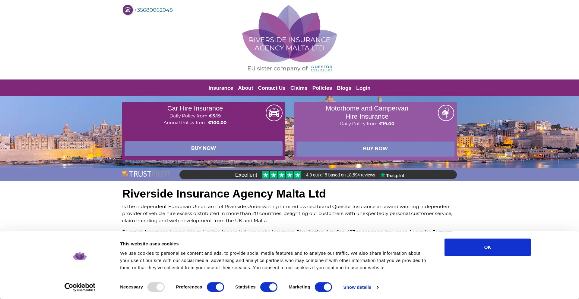 Riverside Malta is an insurance agent providing outstanding hire insurance products for customers living outside the UK renting a car, motorhome or campervan