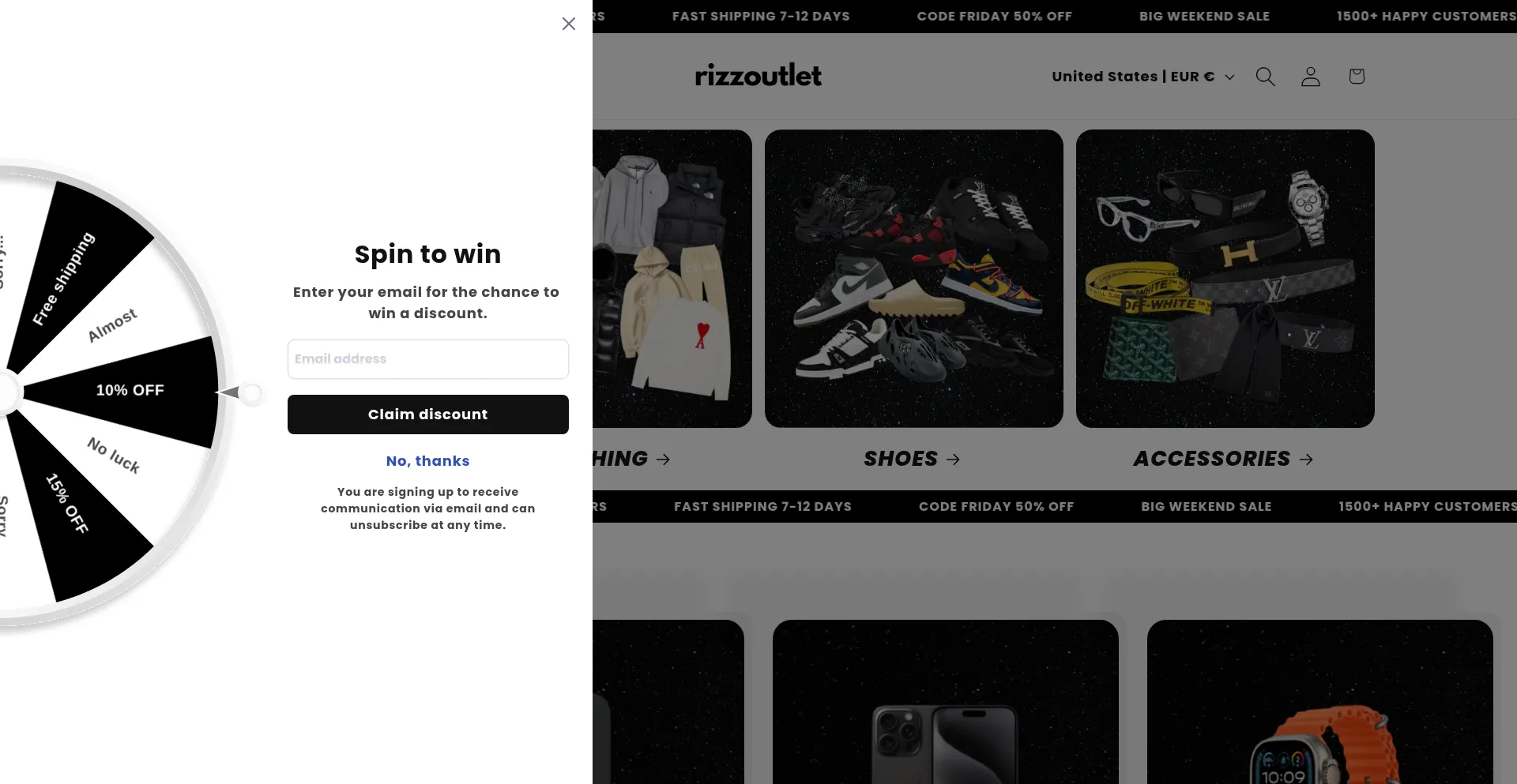 分析表明 rizzoutlet.com 作为电子商务平台运营,促进商品或服务的在线交易。该网站实现了购物车功能、支付处理系统和产品目录功能,这些是商业零售运营的典型特征。