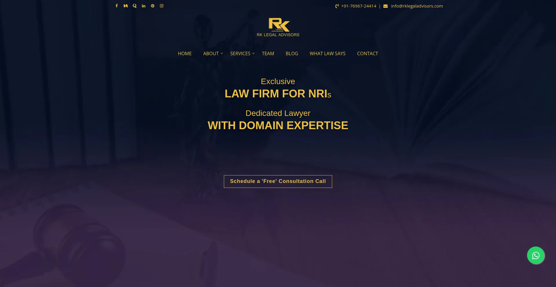 分析显示 rklegaladvisors.com 显示社交媒体图标或链接,但不连接到合法的社交媒体档案。这种欺骗性做法通常用于创造虚假合法性,代表需要立即谨慎的欺诈意图的重要指标。
