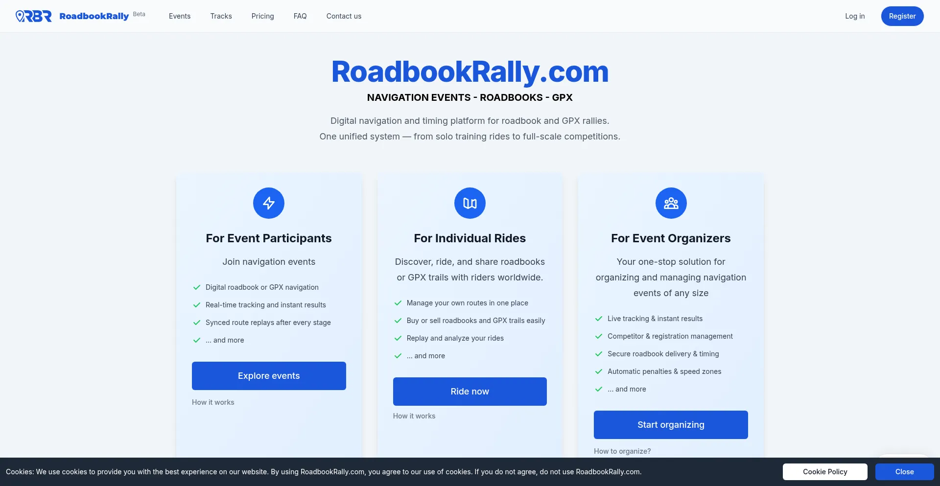 Navigation event management platform. Organize and navigate your rallies and roadbooks with ease. - RoadbookRally