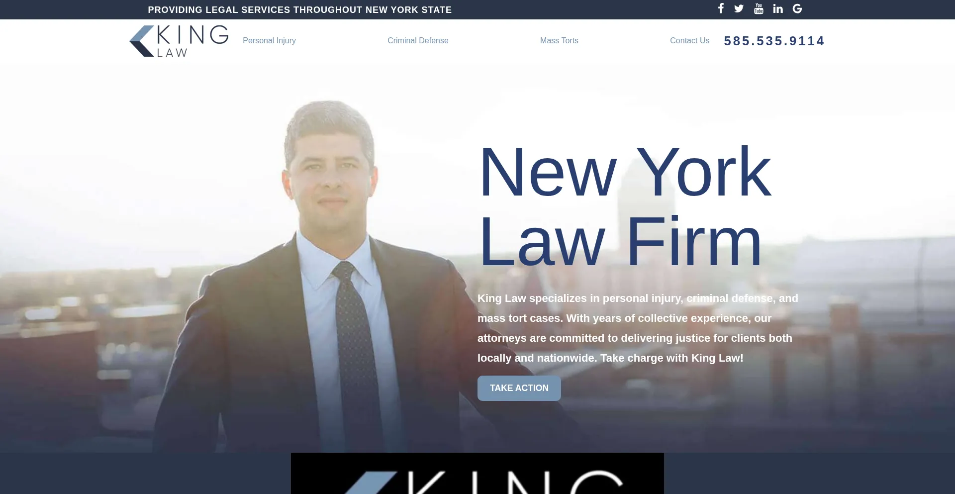 King Law is a personal injury, criminal defense, and mass tort law firm located in Rochester, NY offering legal services to clients locally and nationwide.
