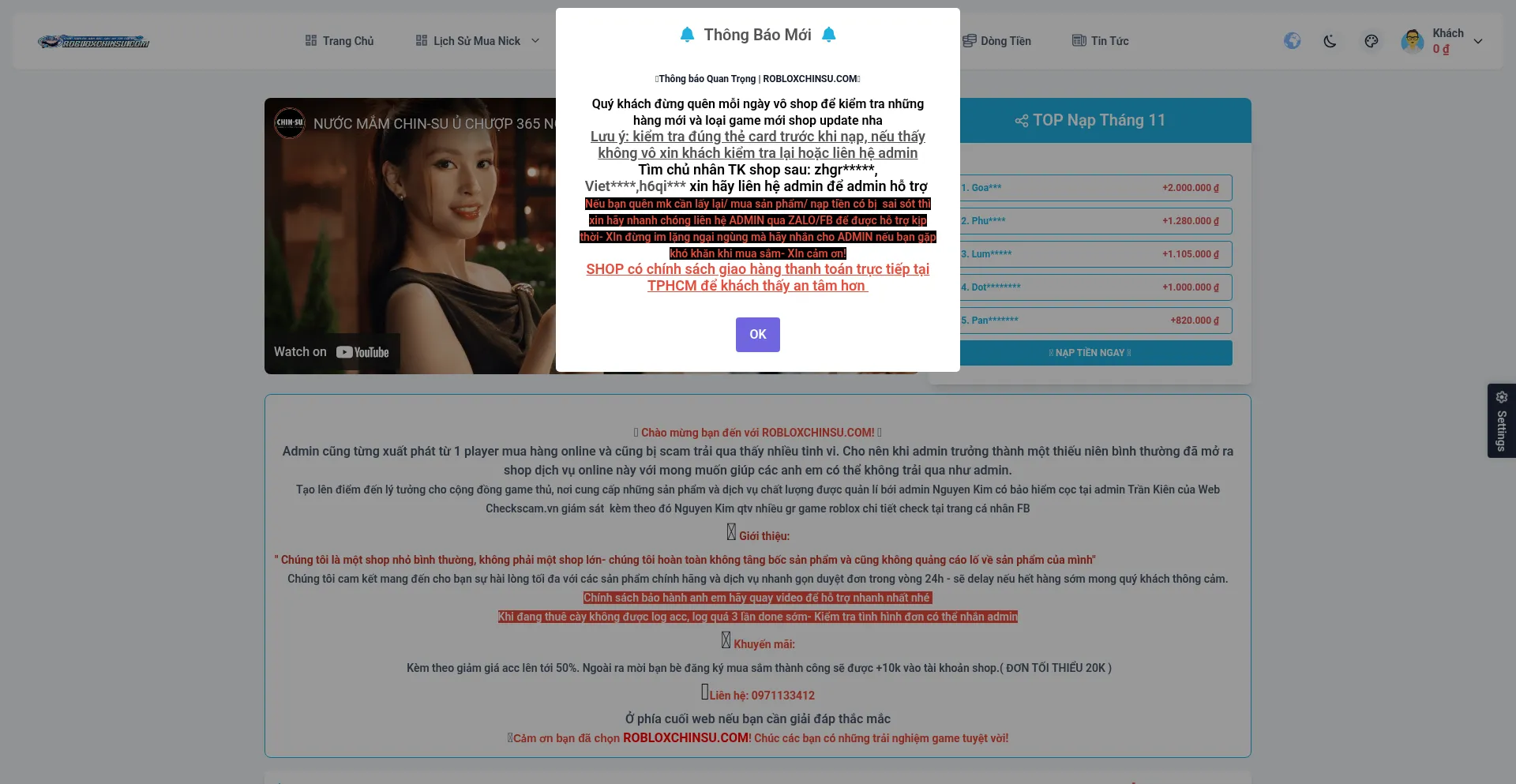 ROBLOXCHINSU.COM | SHOP ROBLOX Uy Tín Chất Lượng Tự Động 24/7