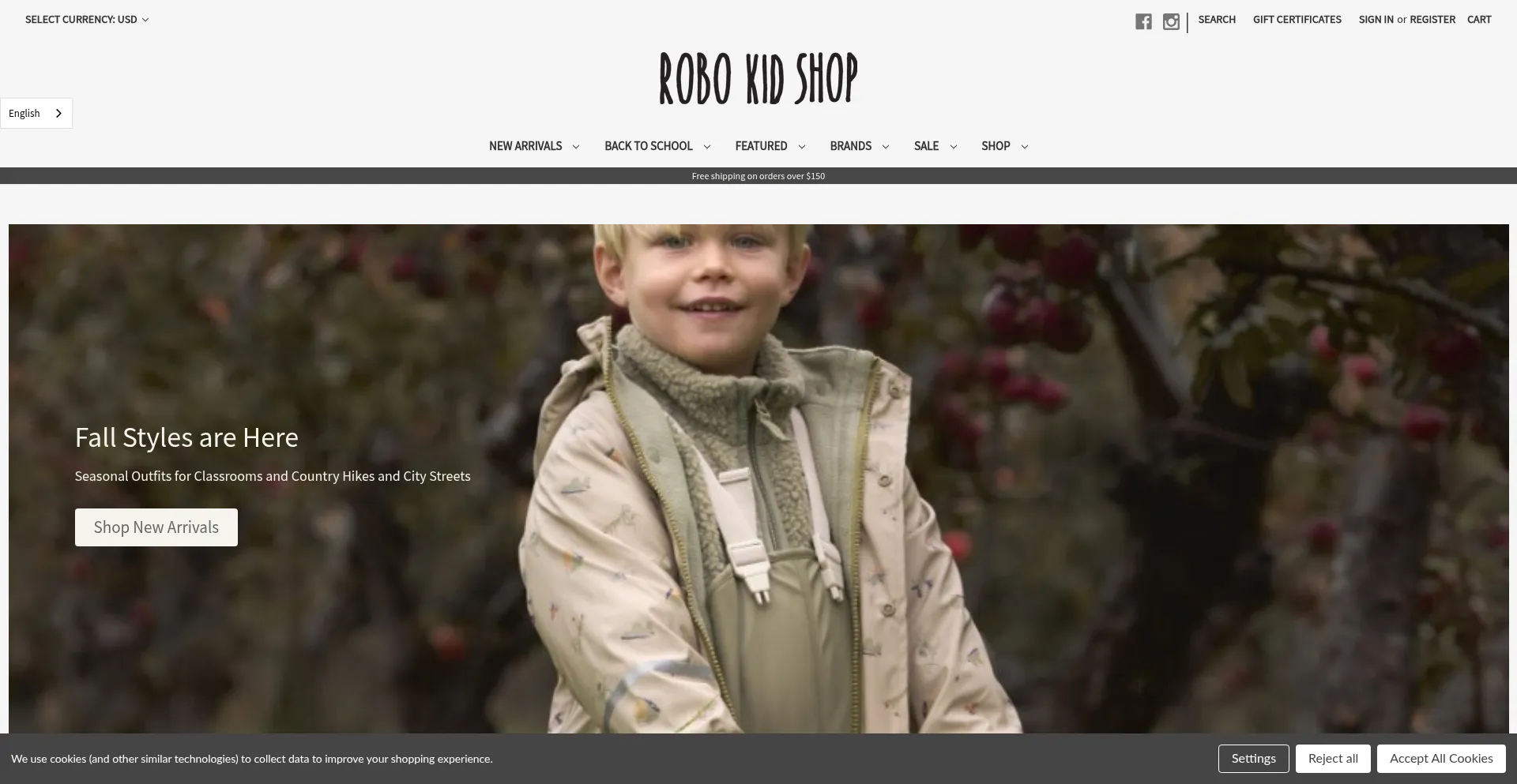 该网站实现符合GDPR或CCPA等隐私法规的cookie同意机制。这表明 robokidshop.com 遵守数据保护标准并为用户提供对个人数据收集实践的控制。