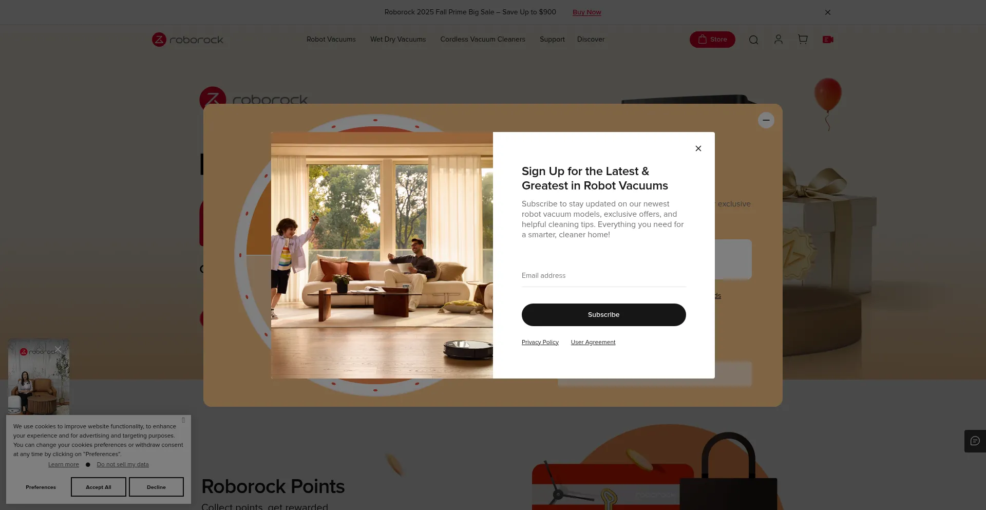 该网站实现符合GDPR或CCPA等隐私法规的cookie同意机制。这表明 roborock.com 遵守数据保护标准并为用户提供对个人数据收集实践的控制。