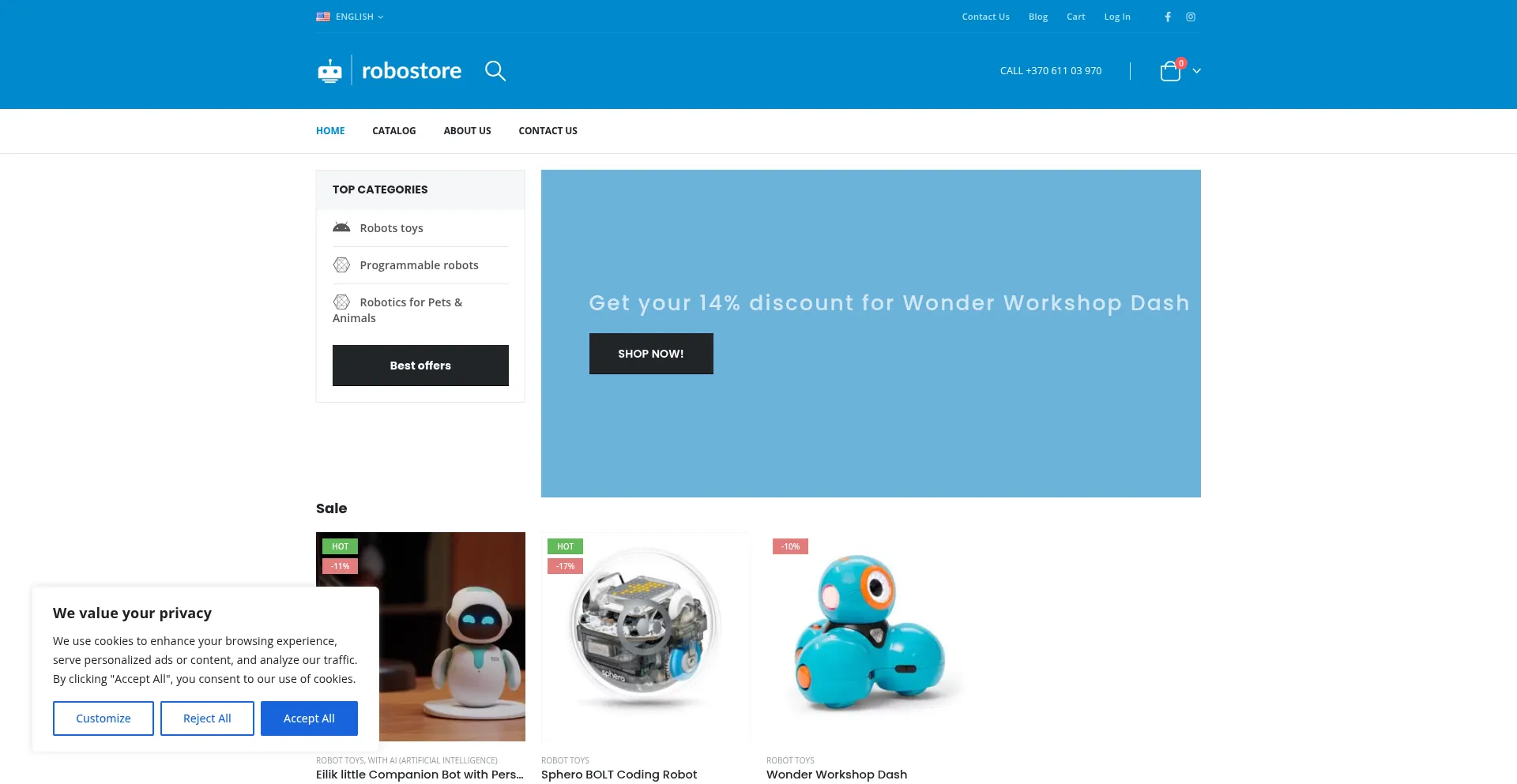 该网站实现符合GDPR或CCPA等隐私法规的cookie同意机制。这表明 robostore.lt 遵守数据保护标准并为用户提供对个人数据收集实践的控制。