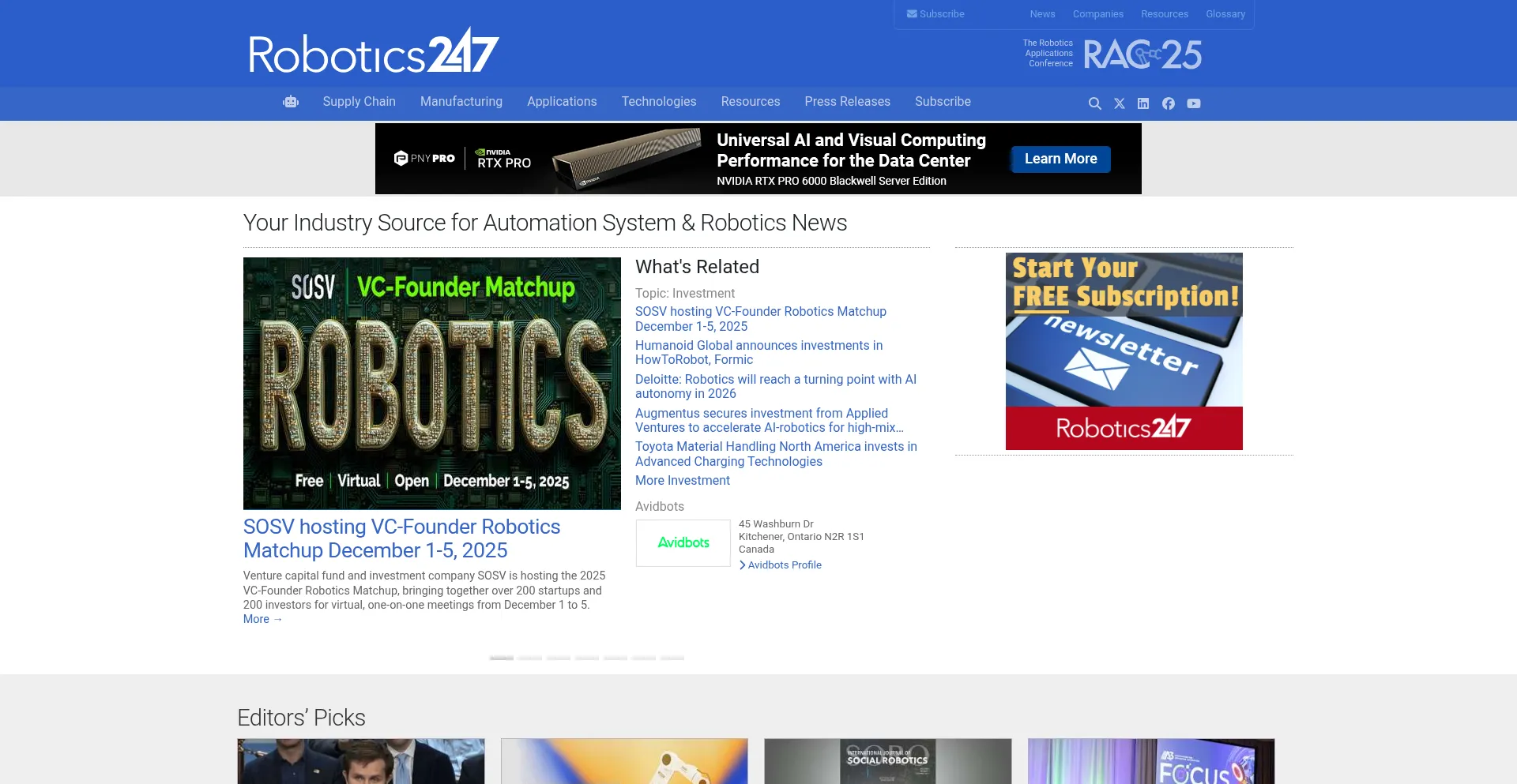 网站上存在社交媒体链接表明 robotics247.com 在社交媒体上维护官方账户,这是可信度和参与度的积极信号。