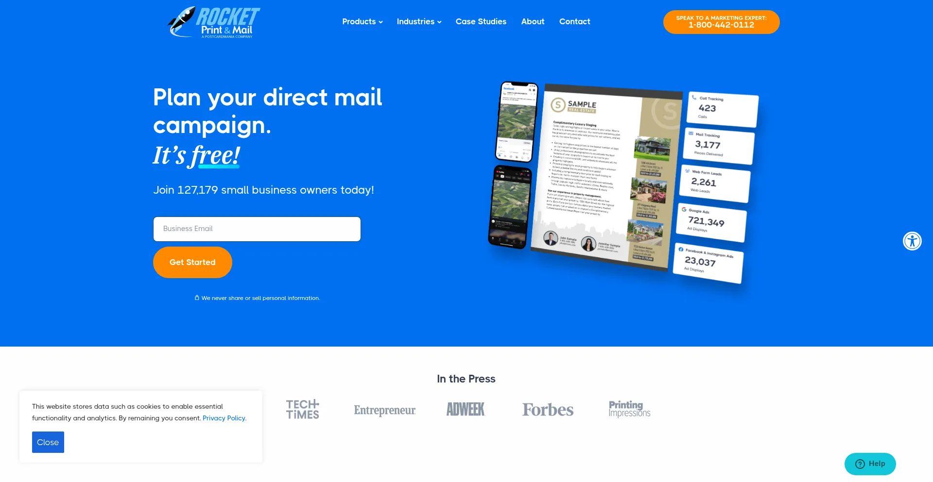 rocketprintandmail.com 使用 Google Tag Manager 在其网站上添加和更新追踪代码(标签)。