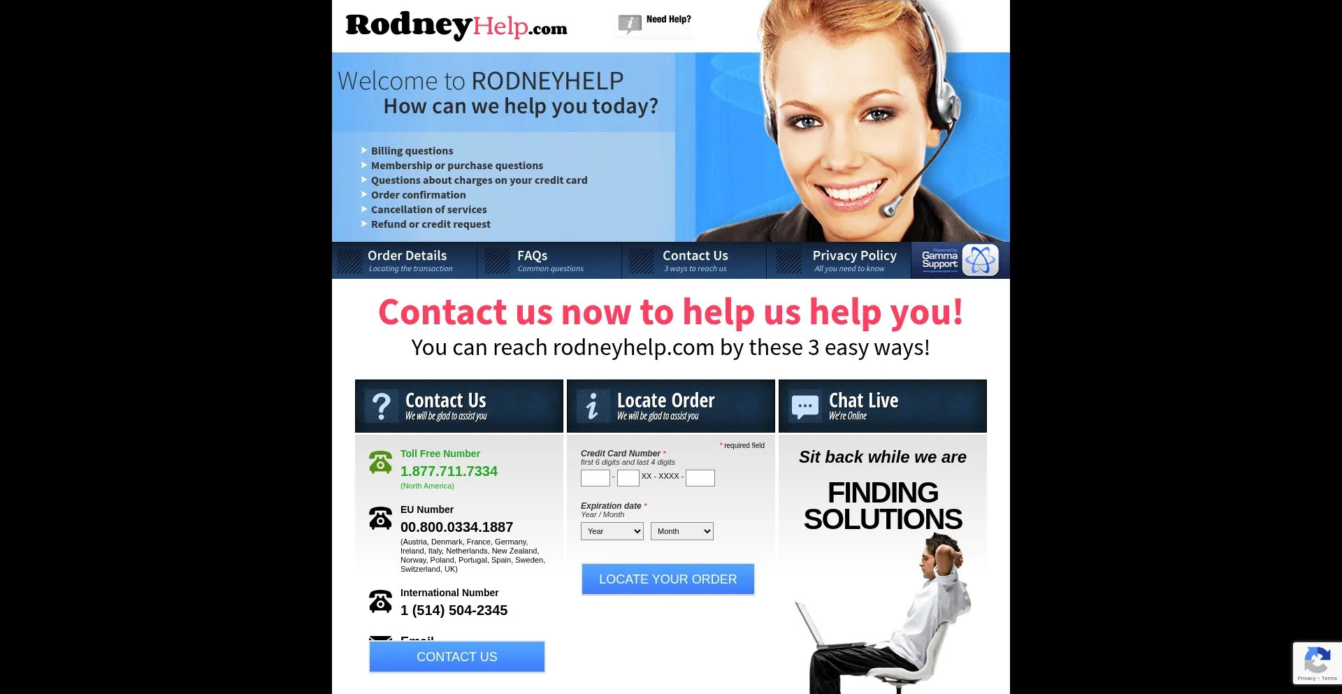 该网站实现数据收集表单,请求个人信息,包括姓名、电子邮件地址、电话号码或其他敏感详细信息。用户应验证 rodneyhelp.com 的合法性并在提交个人数据前查看隐私政策。