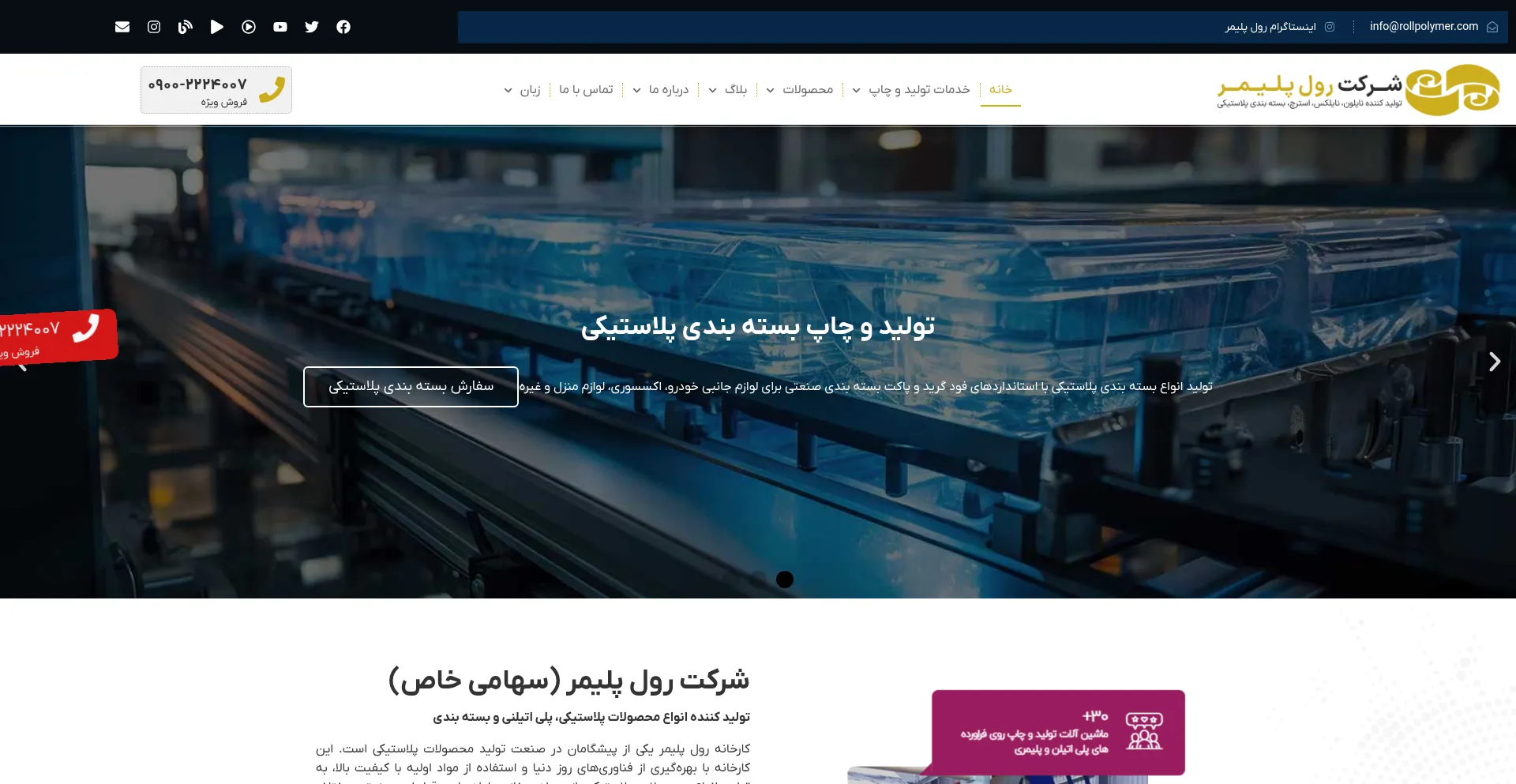 مجموعه رول پلیمر،تولید کننده انواع محصولات پلی اتیلن PE شامل نایلون و نایلکس فروشگاهی، پلاستیک گل...