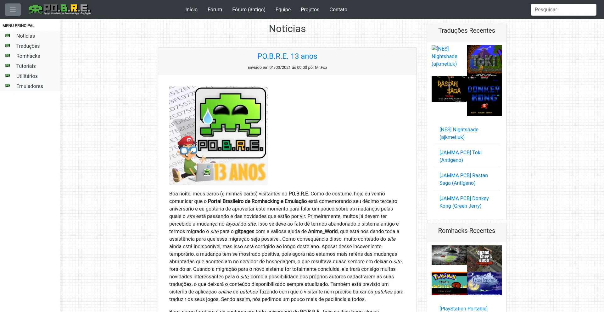 PO.B.R.E - Portal Brasileiro de Romhacking e Emulação - Notícias
