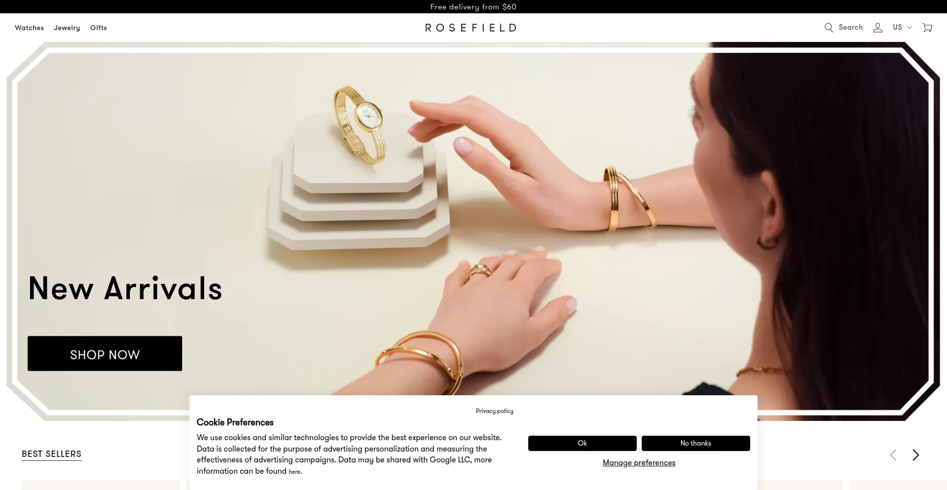 该网站实现符合GDPR或CCPA等隐私法规的cookie同意机制。这表明 rosefieldwatches.com 遵守数据保护标准并为用户提供对个人数据收集实践的控制。