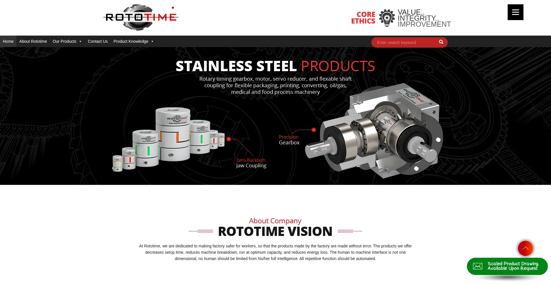 RotoTime- Stainless Steel Products such as spiral bevel gearbox, zero backlash jaw/disc shaft couplings, and bevel gear jacks are designed for machinery.