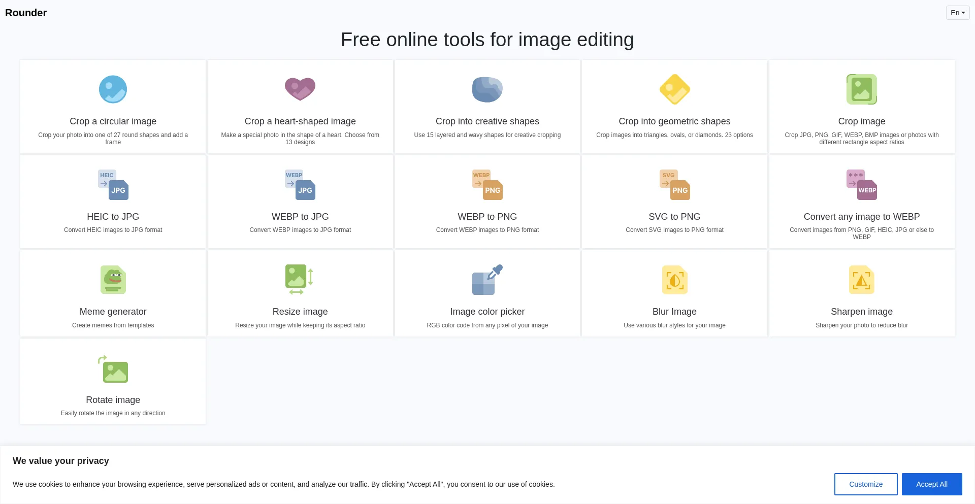该网站实现符合GDPR或CCPA等隐私法规的cookie同意机制。这表明 rounder.pics 遵守数据保护标准并为用户提供对个人数据收集实践的控制。