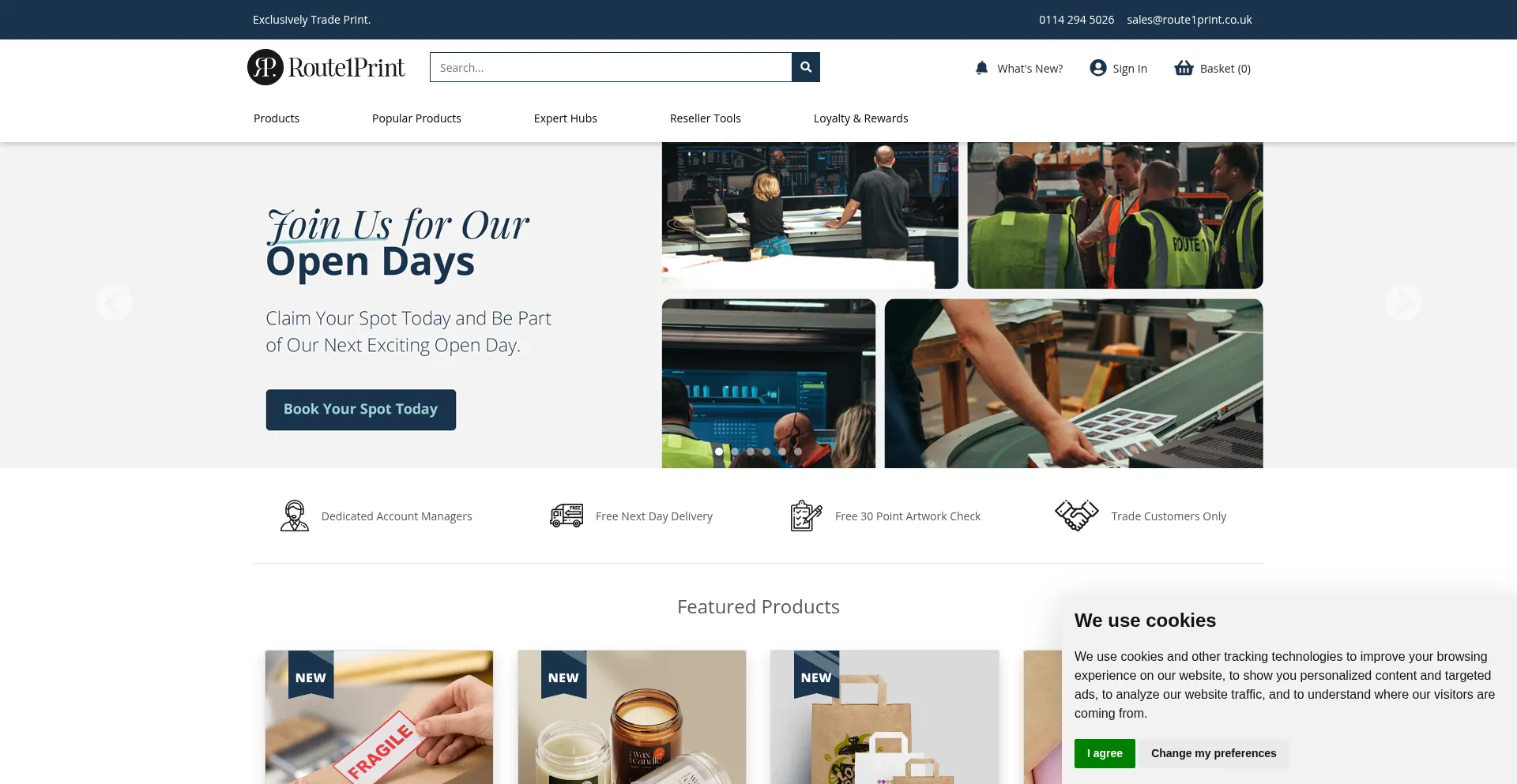 该网站实现符合GDPR或CCPA等隐私法规的cookie同意机制。这表明 route1print.co.uk 遵守数据保护标准并为用户提供对个人数据收集实践的控制。