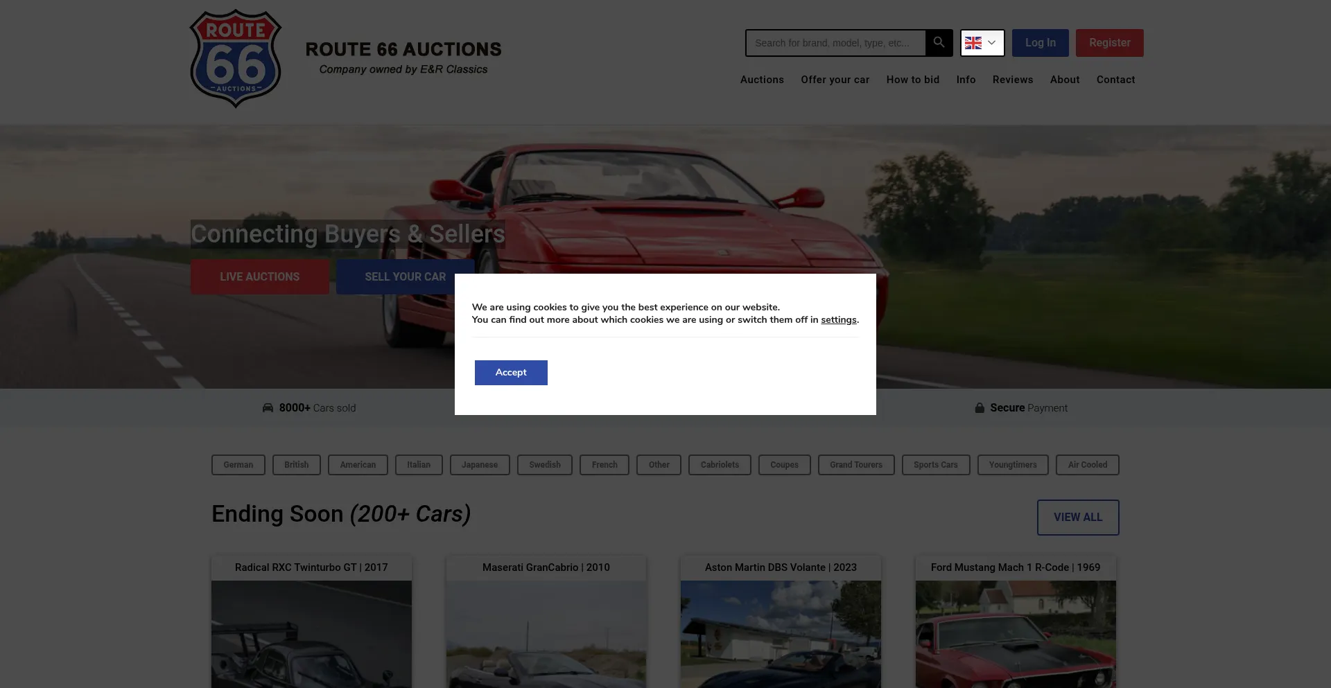 该网站实现符合GDPR或CCPA等隐私法规的cookie同意机制。这表明 route66auctions.com 遵守数据保护标准并为用户提供对个人数据收集实践的控制。