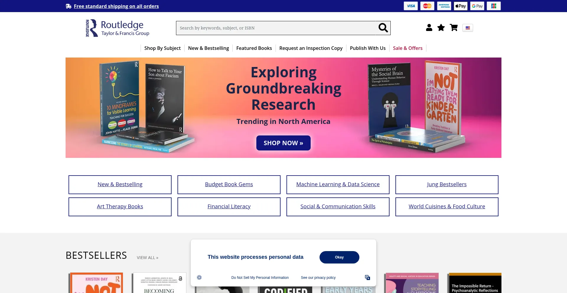routledge.com 使用 Bootstrap,这是一个广泛采用的开源响应式网页开发框架。Bootstrap 通过标准化组件和样式实现移动友好界面的高效创建。