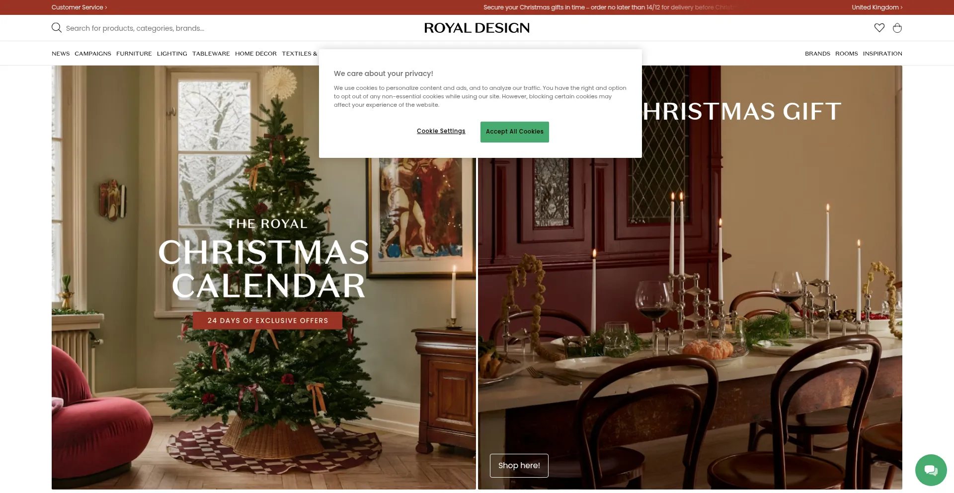 该网站实现符合GDPR或CCPA等隐私法规的cookie同意机制。这表明 royaldesign.co.uk 遵守数据保护标准并为用户提供对个人数据收集实践的控制。