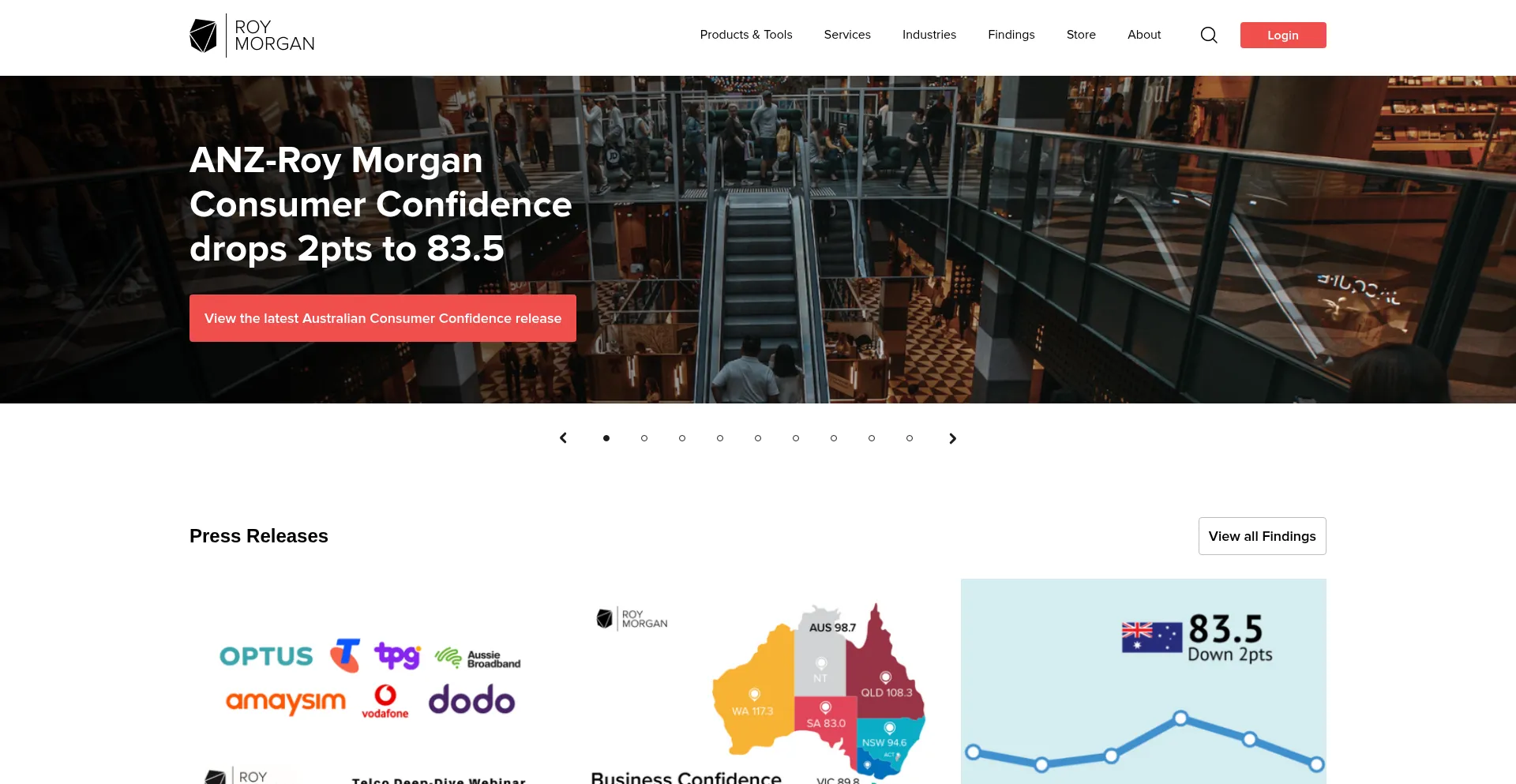网站上存在社交媒体链接表明 roymorgan.com 在社交媒体上维护官方账户,这是可信度和参与度的积极信号。