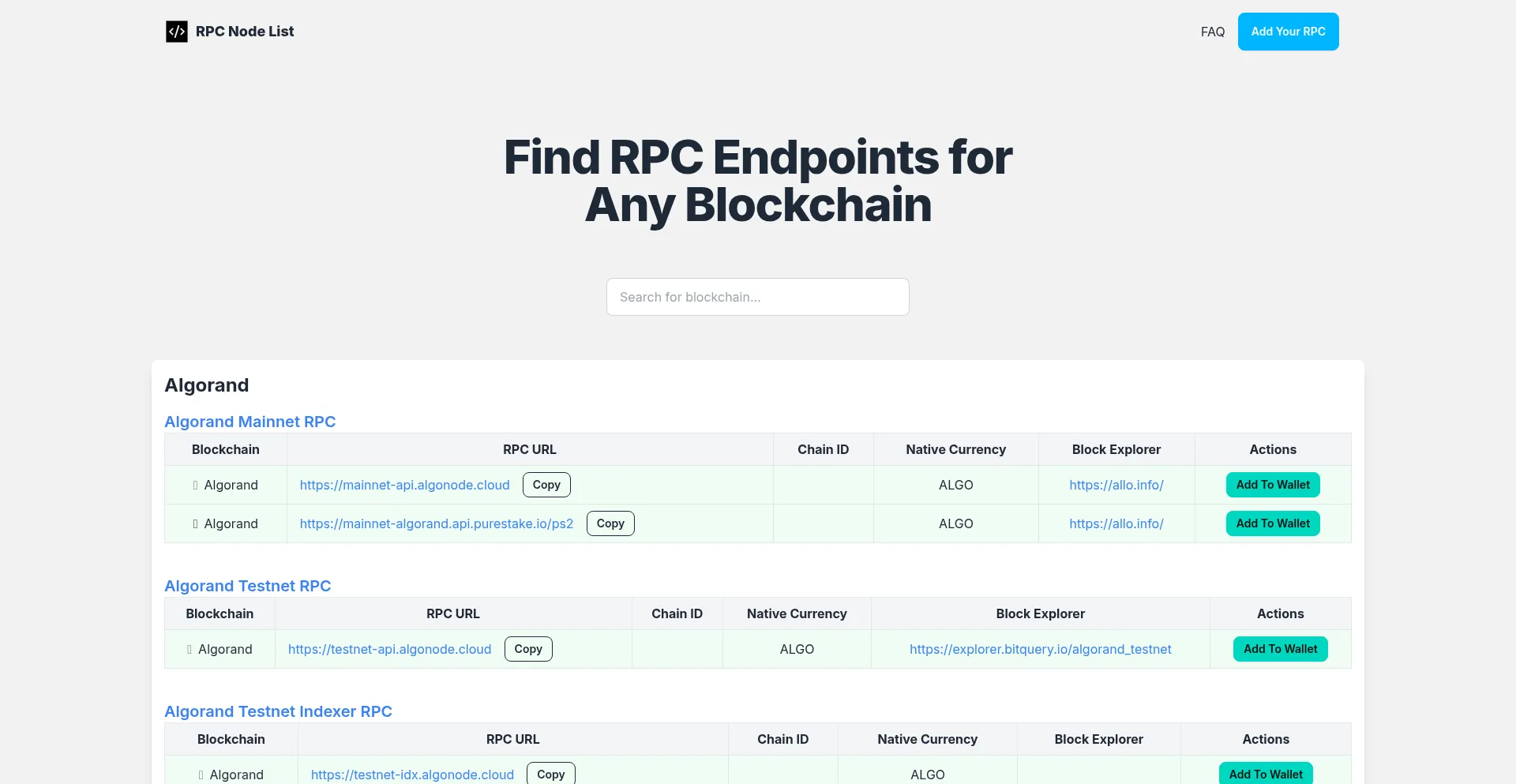 List of blockchain RPC endpoints for web3 developers