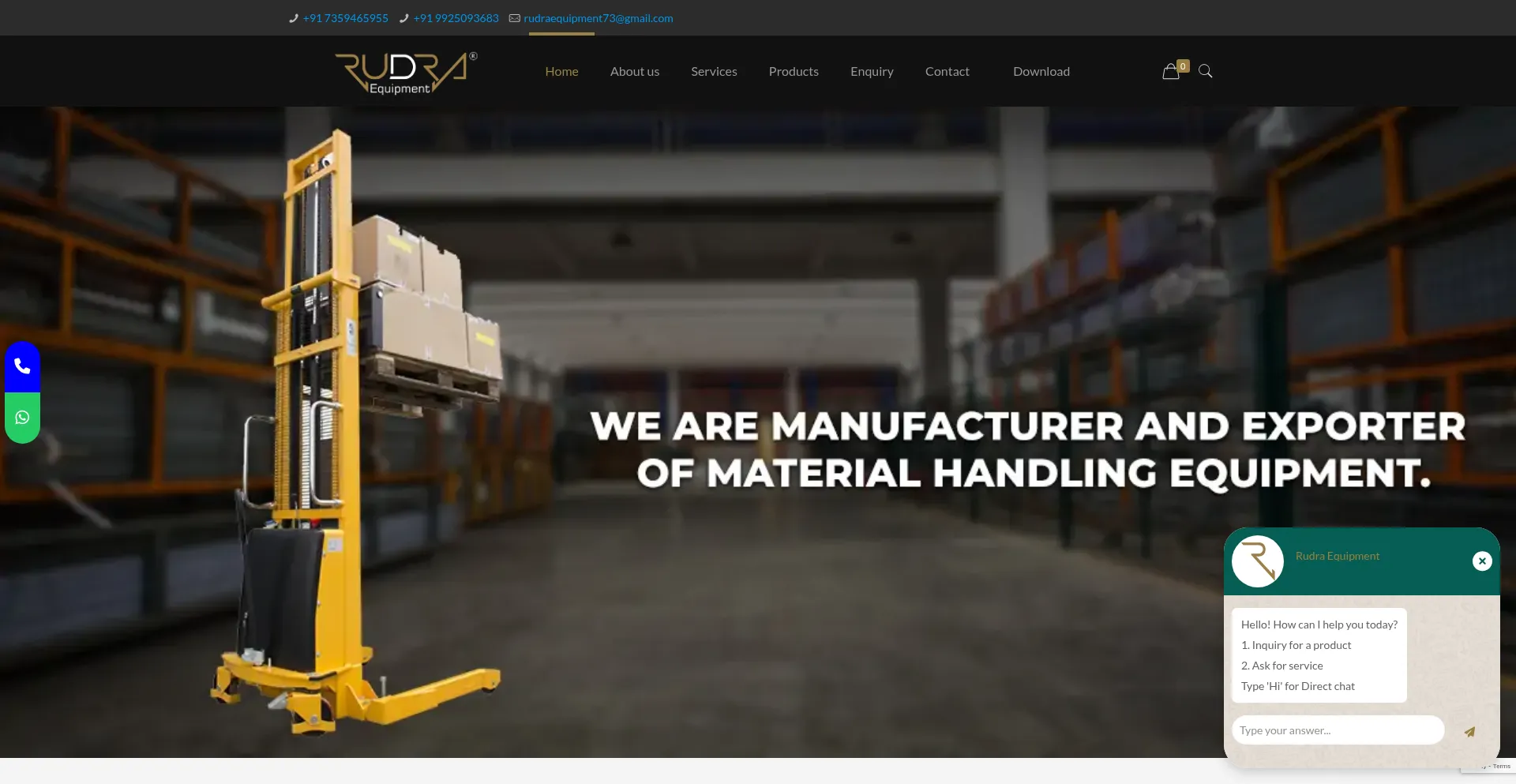 Discover a wide range of pallet trucks, hydraulic stackers, scissor lifts, and drum equipment online at Rudra Equipments. Quality for all your material handling needs.