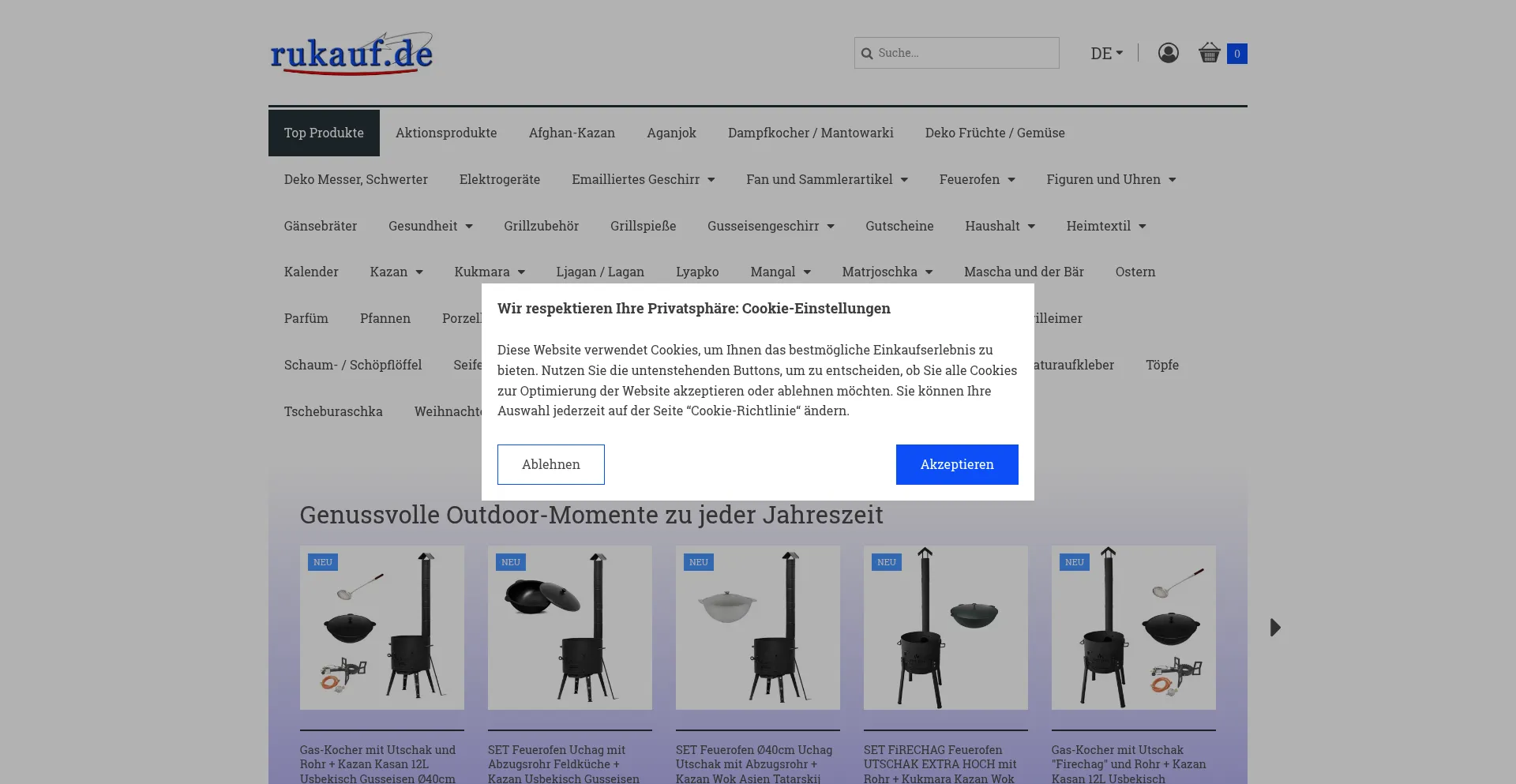 rukauf.de Kukmara Gusseisen Kazan Utschak Kasan Outdoorofen Spiesse
