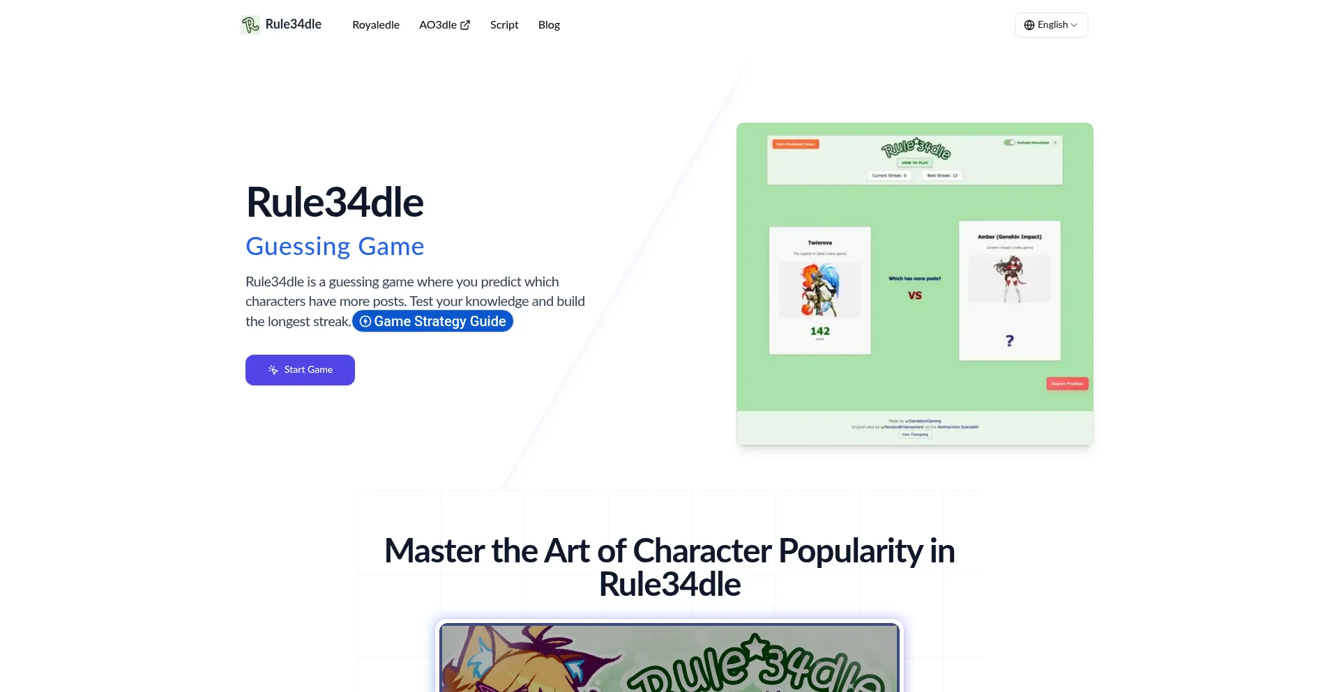 Rule34dle is a guessing game where you predict which characters have more posts. Test your knowledge and build the longest streak.