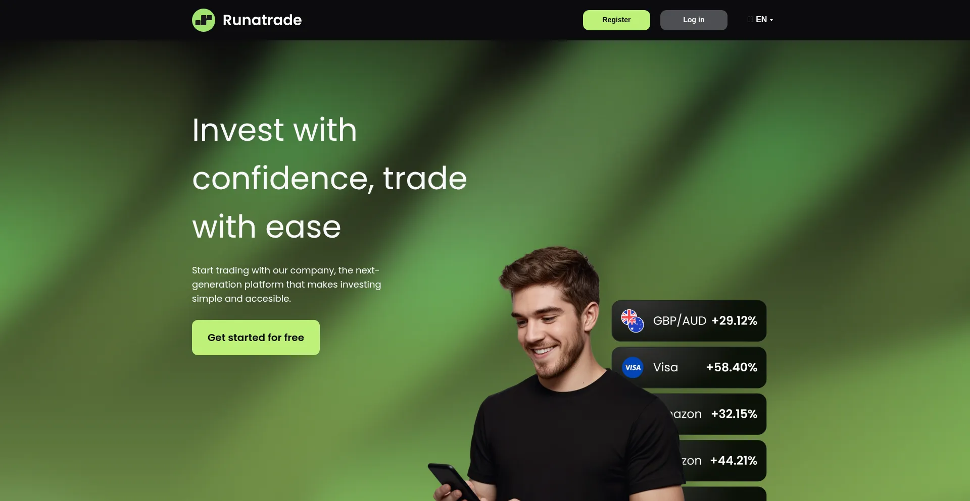 该网站实现数据收集表单,请求个人信息,包括姓名、电子邮件地址、电话号码或其他敏感详细信息。用户应验证 runatrade.com 的合法性并在提交个人数据前查看隐私政策。