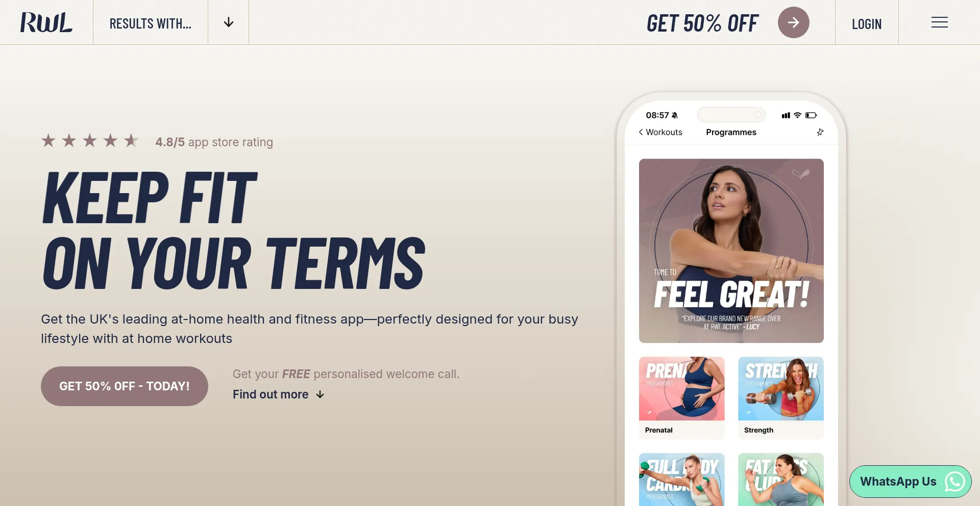 Get the UK’s leading at-home fitness app with at home workouts, diet plans, and wellbeing support—perfect for busy lifestyles. Start your journey today and save 50%