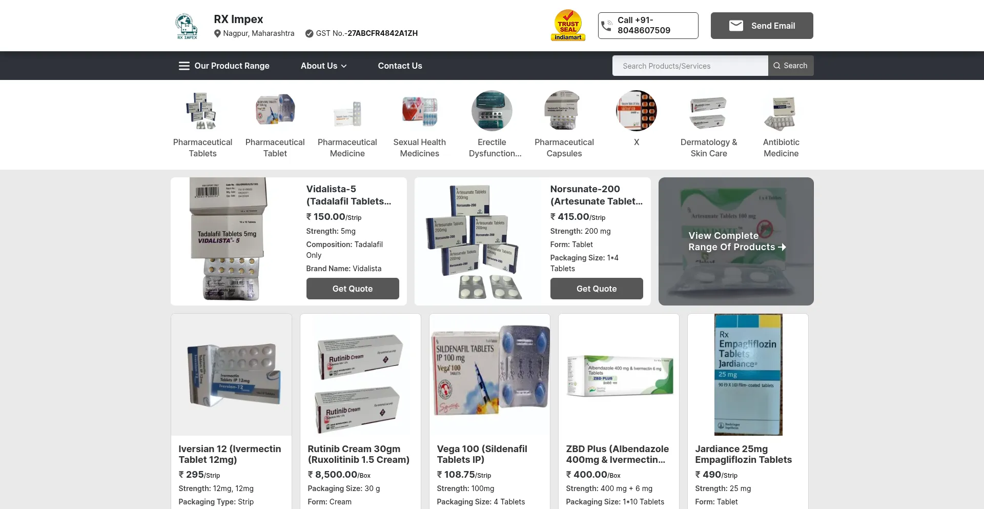 分析表明 rximpex.in 作为电子商务平台运营,促进商品或服务的在线交易。该网站实现了购物车功能、支付处理系统和产品目录功能,这些是商业零售运营的典型特征。