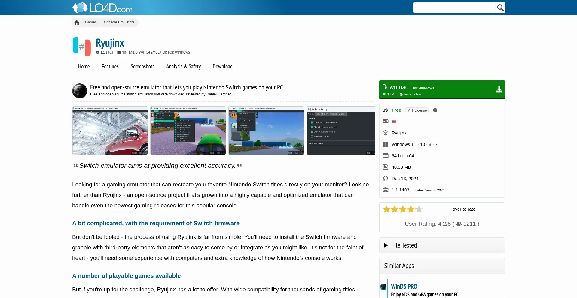 Ryujinx, free download for Windows. Free and open-source emulator that lets you play Nintendo Switch games on your PC.