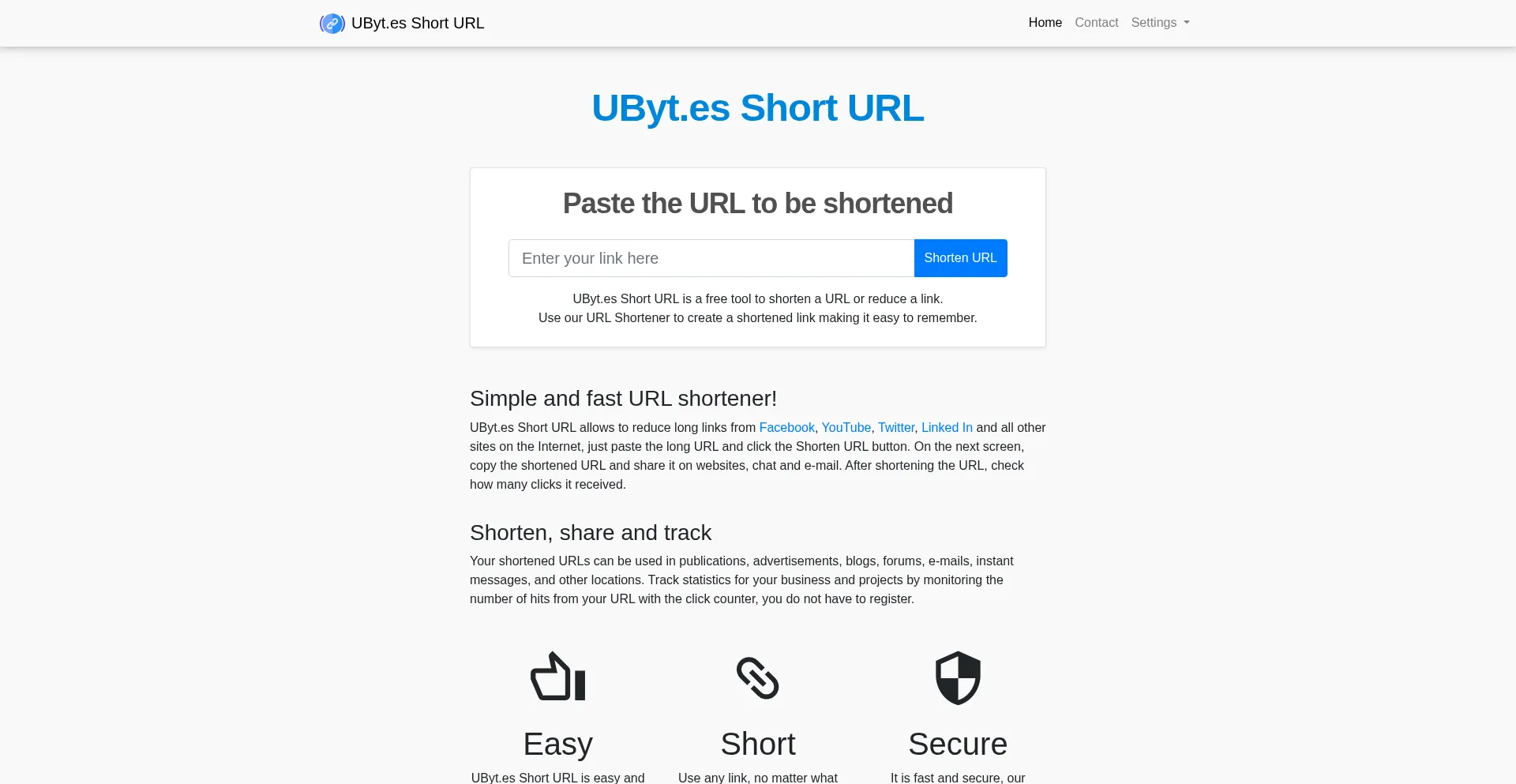 UByt.es Short URL is a tool to reduce a long link. Use it to shorten links and then share them, in addition you can monitor traffic statistics.