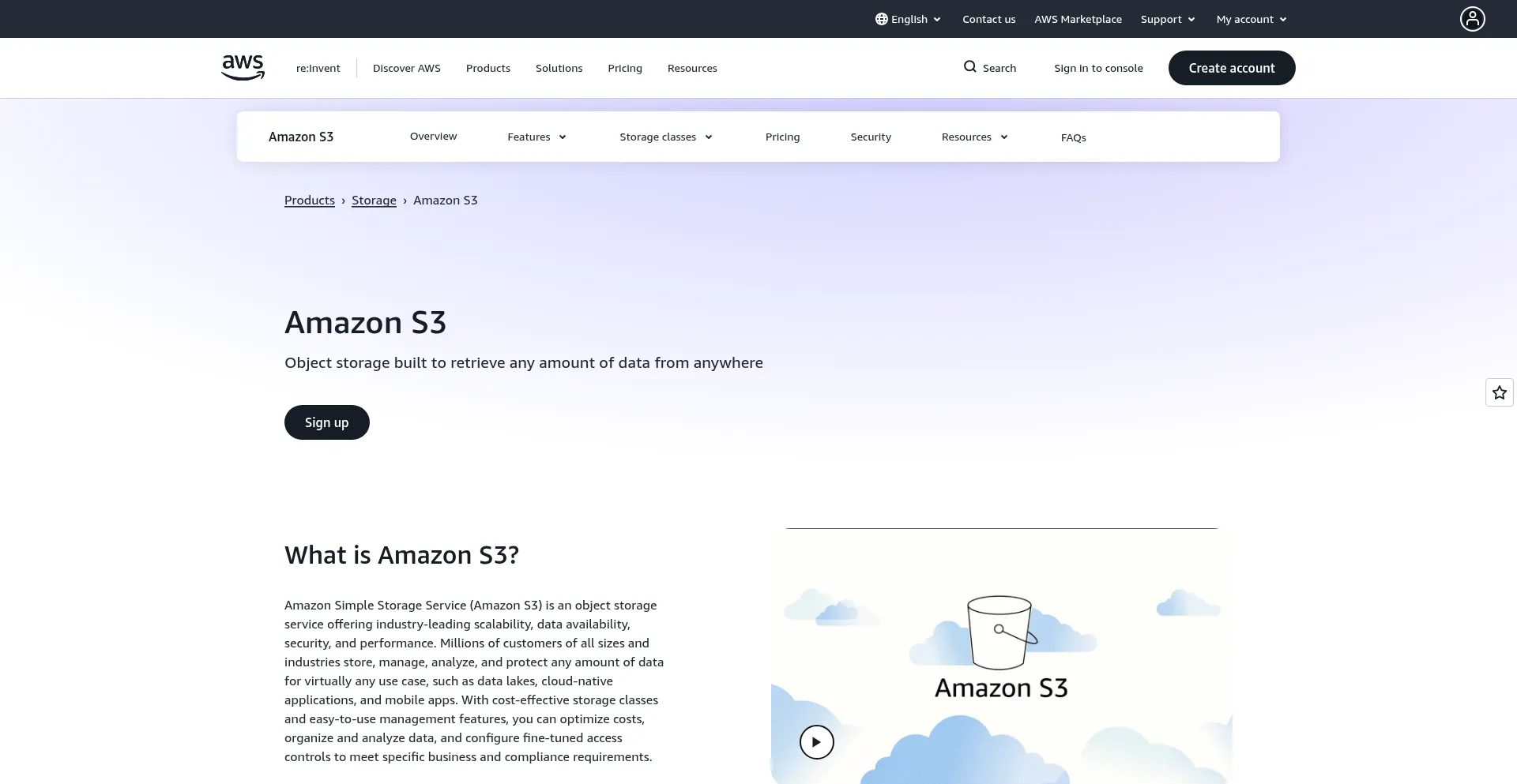 Cloud Object Storage – Amazon S3 – Amazon Web Services
