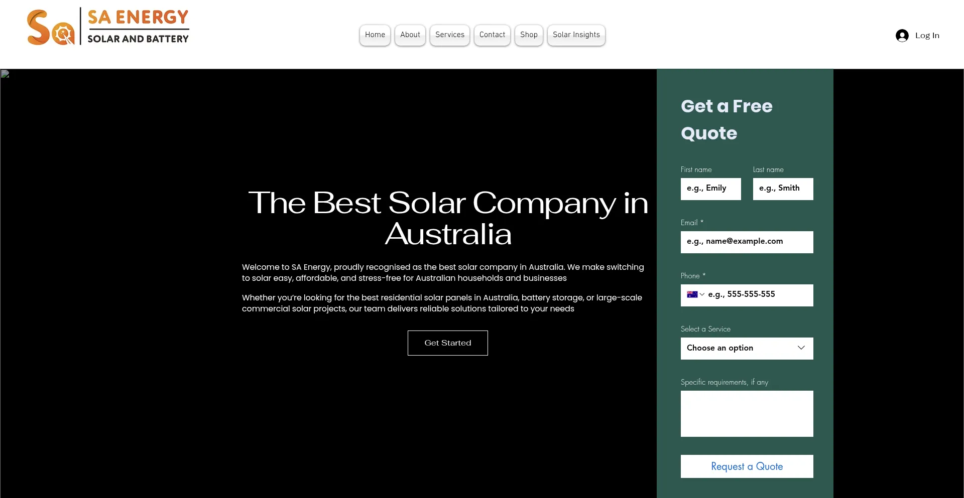 该网站实现数据收集表单,请求个人信息,包括姓名、电子邮件地址、电话号码或其他敏感详细信息。用户应验证 saenergysolarandbattery.au 的合法性并在提交个人数据前查看隐私政策。