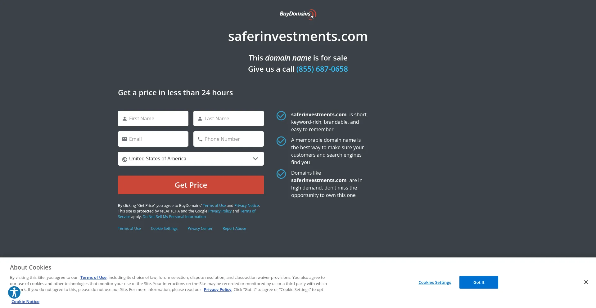 该网站实现符合GDPR或CCPA等隐私法规的cookie同意机制。这表明 saferinvestments.com 遵守数据保护标准并为用户提供对个人数据收集实践的控制。