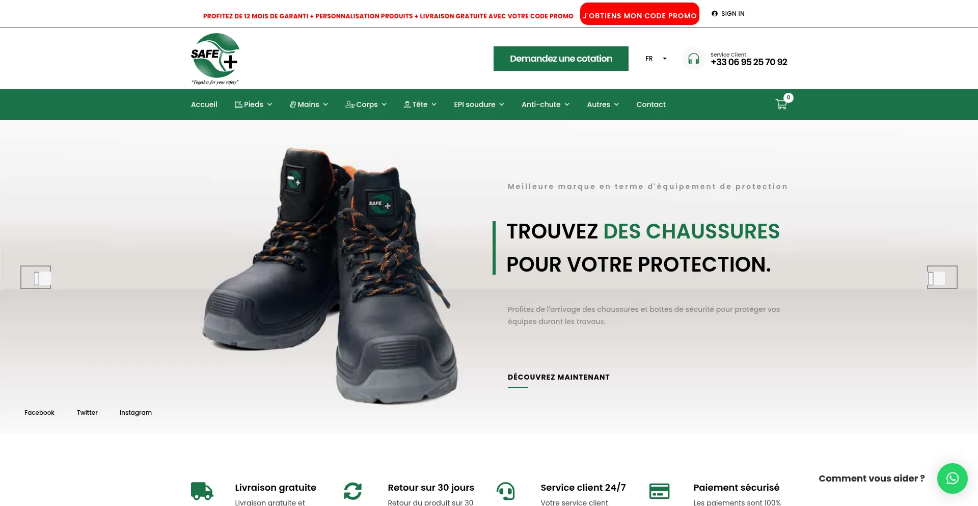 safetyplus.fr 使用 Bootstrap,这是一个广泛采用的开源响应式网页开发框架。Bootstrap 通过标准化组件和样式实现移动友好界面的高效创建。