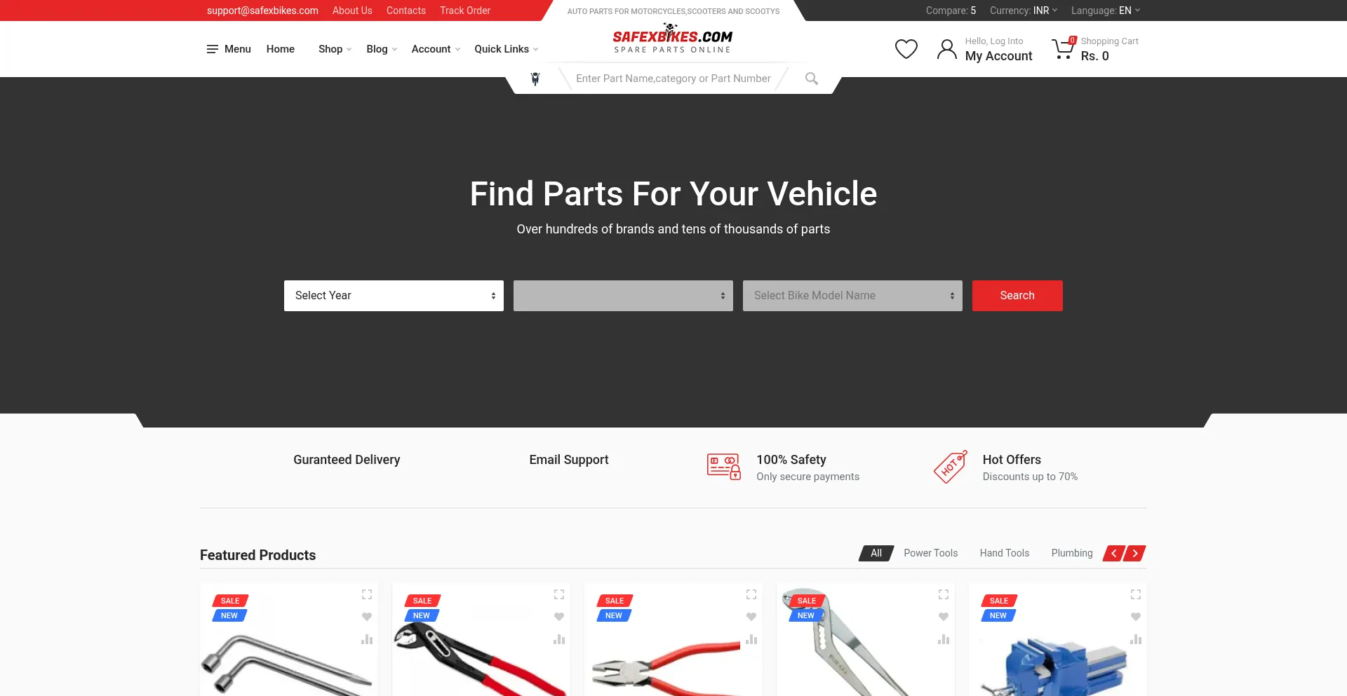 Safex Bikes offers best quality Bike / Motorcycle / Scooter / Scooty Spare Parts and Bike / Motorcycle / Scooter / Scooty Accessories,Helmets,Tyres,Alloys at discount prices on...