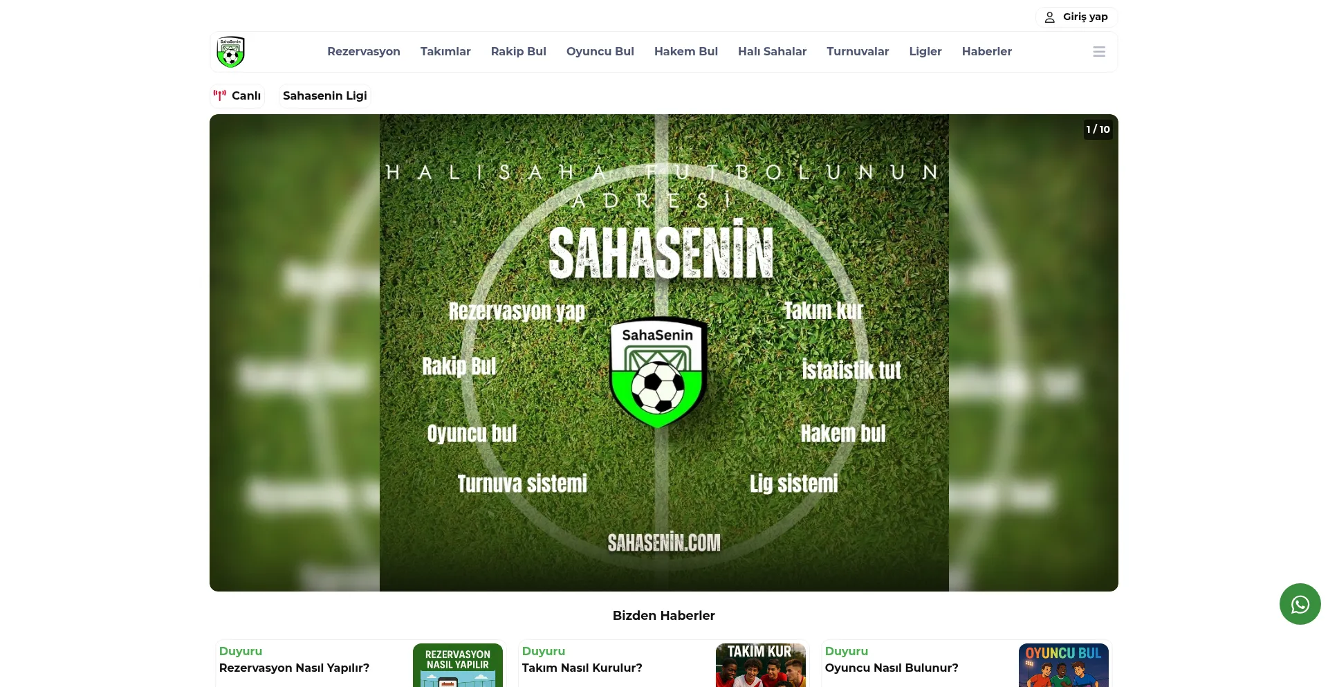 Sahasenin Halı Saha ve Rezervasyon Yönetim Sistemi - Kolay rezervasyon yapma ve saha yönetimi için kapsamlı ve kullanıcı dostu bir arayüz.