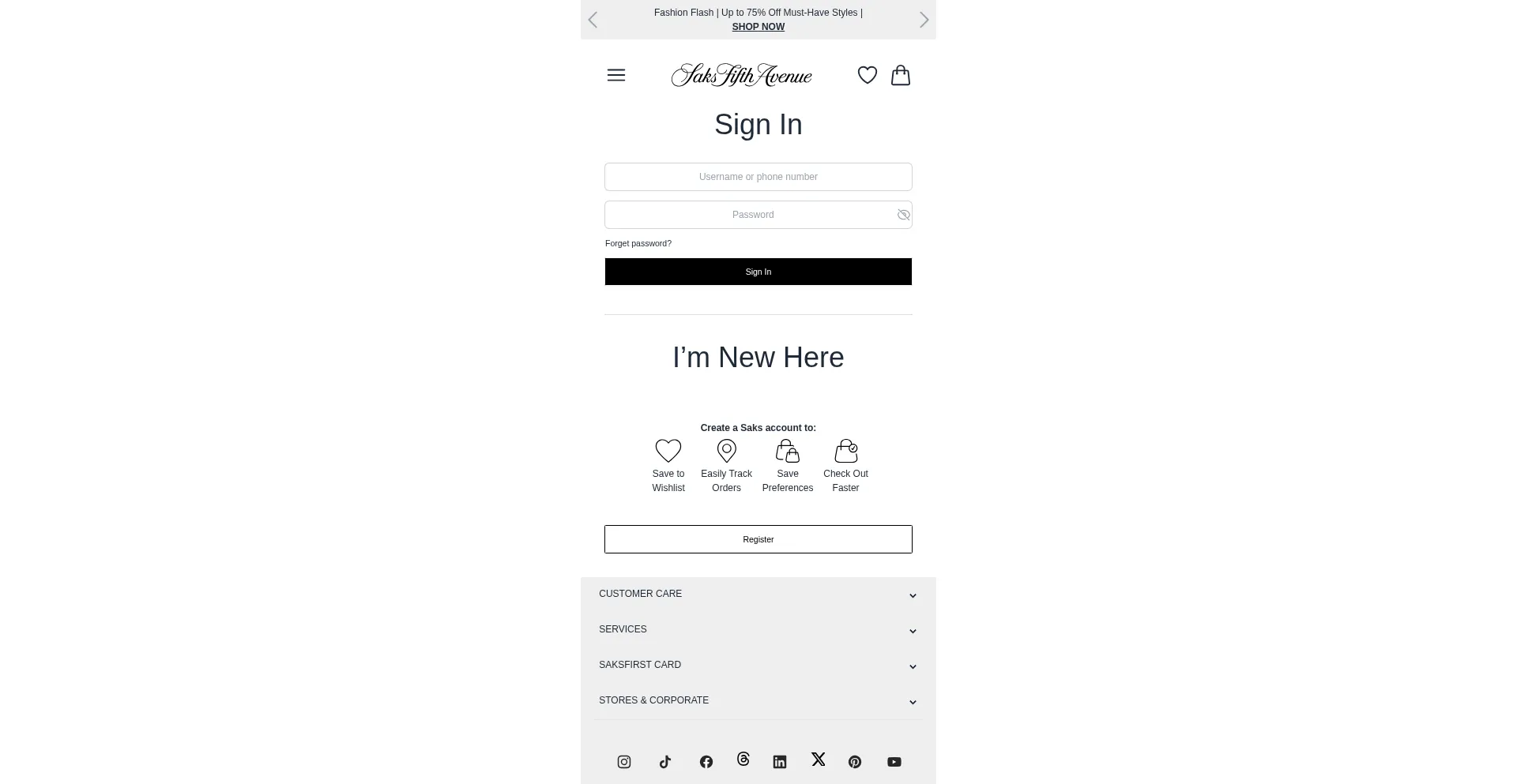 网站上存在社交媒体链接表明 saksoff5thvip.com 在社交媒体上维护官方账户,这是可信度和参与度的积极信号。