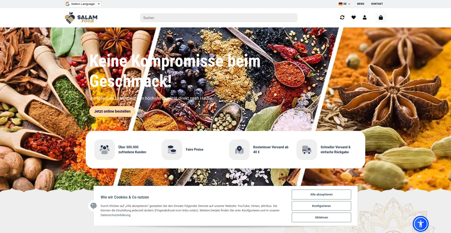 网站 salamfood.de 使用免费电子商务平台解决方案,这可能表明成本意识运营,但也可能暗示与企业级解决方案相比在安全功能、客户支持或高级功能方面的限制。