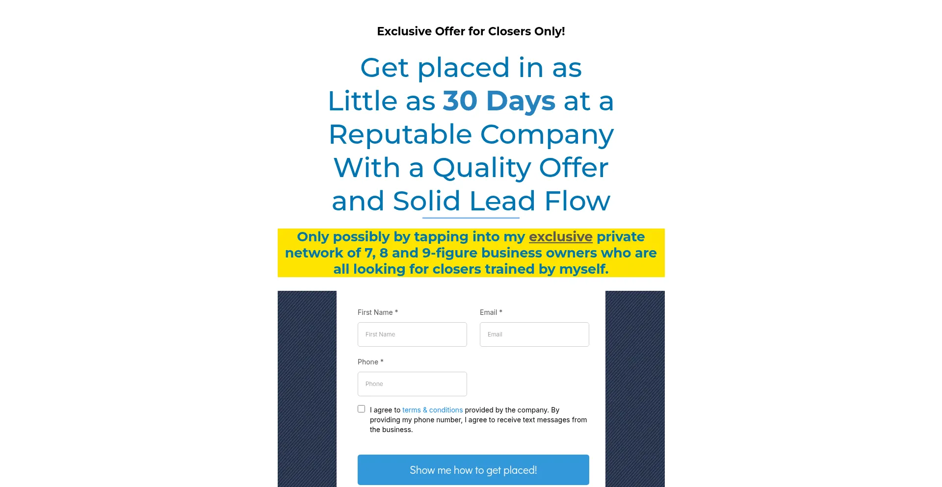 Only possibly by tapping into my exclusive private network of 7, 8 and 9-figure business owners who are all looking for closers trained by myself.