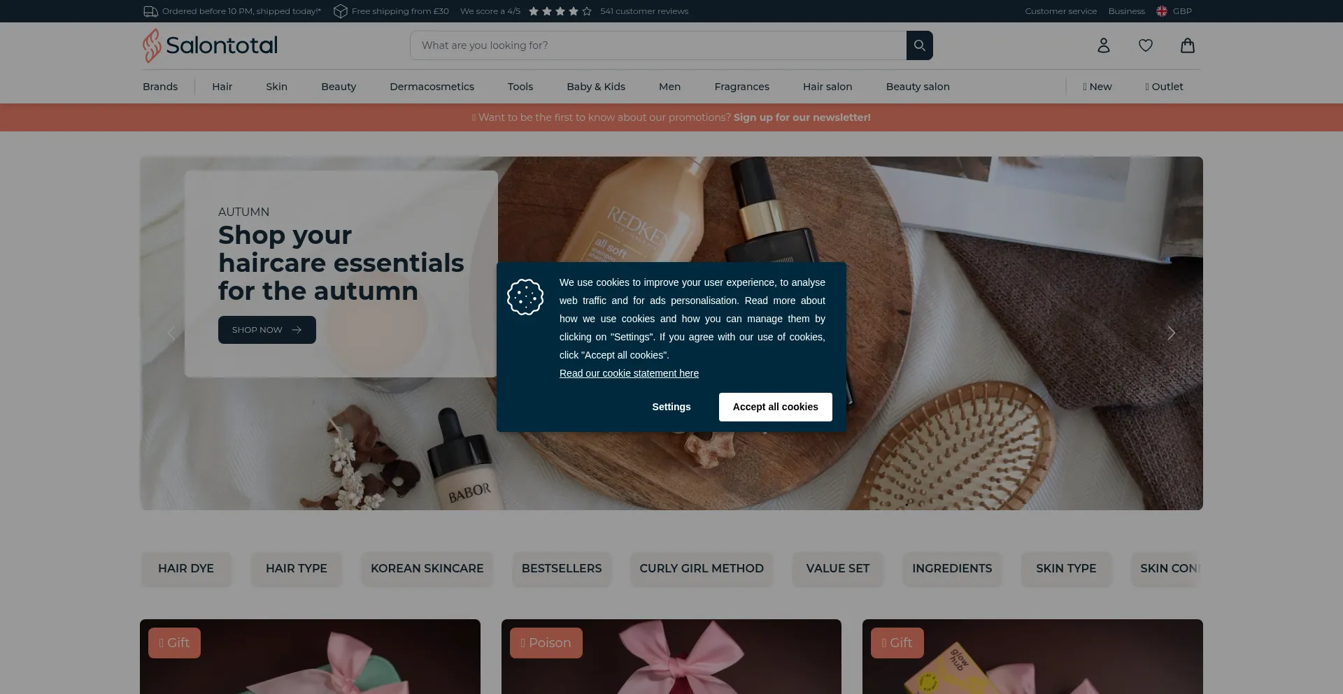 salontotal.co.uk 使用 Google Tag Manager 在其网站上添加和更新追踪代码(标签)。