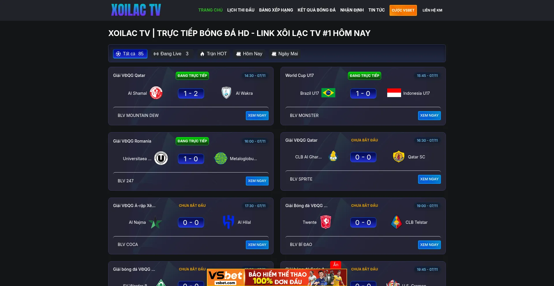 Xoilac TV phát trực tiếp bóng đá HD, miễn phí, không giật lag và đa dạng link dự phòng. Link Xôi Lạc trực tuyến hôm nay cùng đội ngũ BLV chuyê...