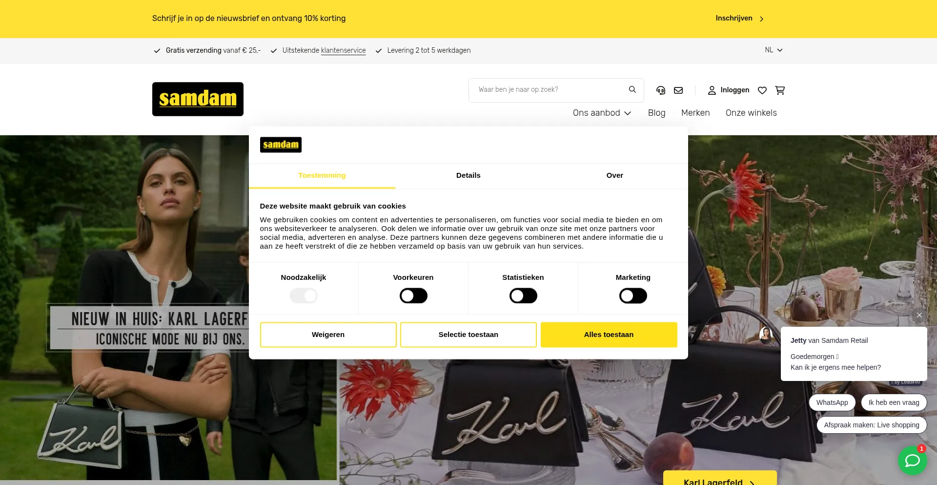 该网站实现符合GDPR或CCPA等隐私法规的cookie同意机制。这表明 samdamretail.be 遵守数据保护标准并为用户提供对个人数据收集实践的控制。
