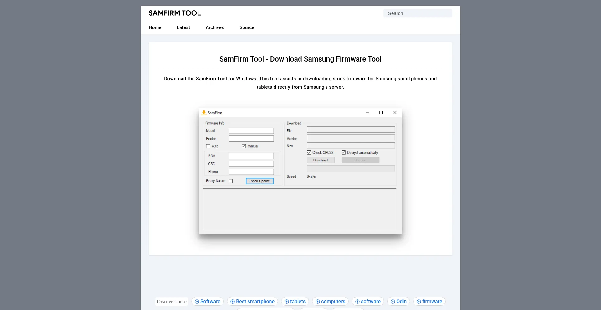Download the latest version of the SamFirm Tool, which facilitates the free downloading of Samsung Stock Firmware (ROM).